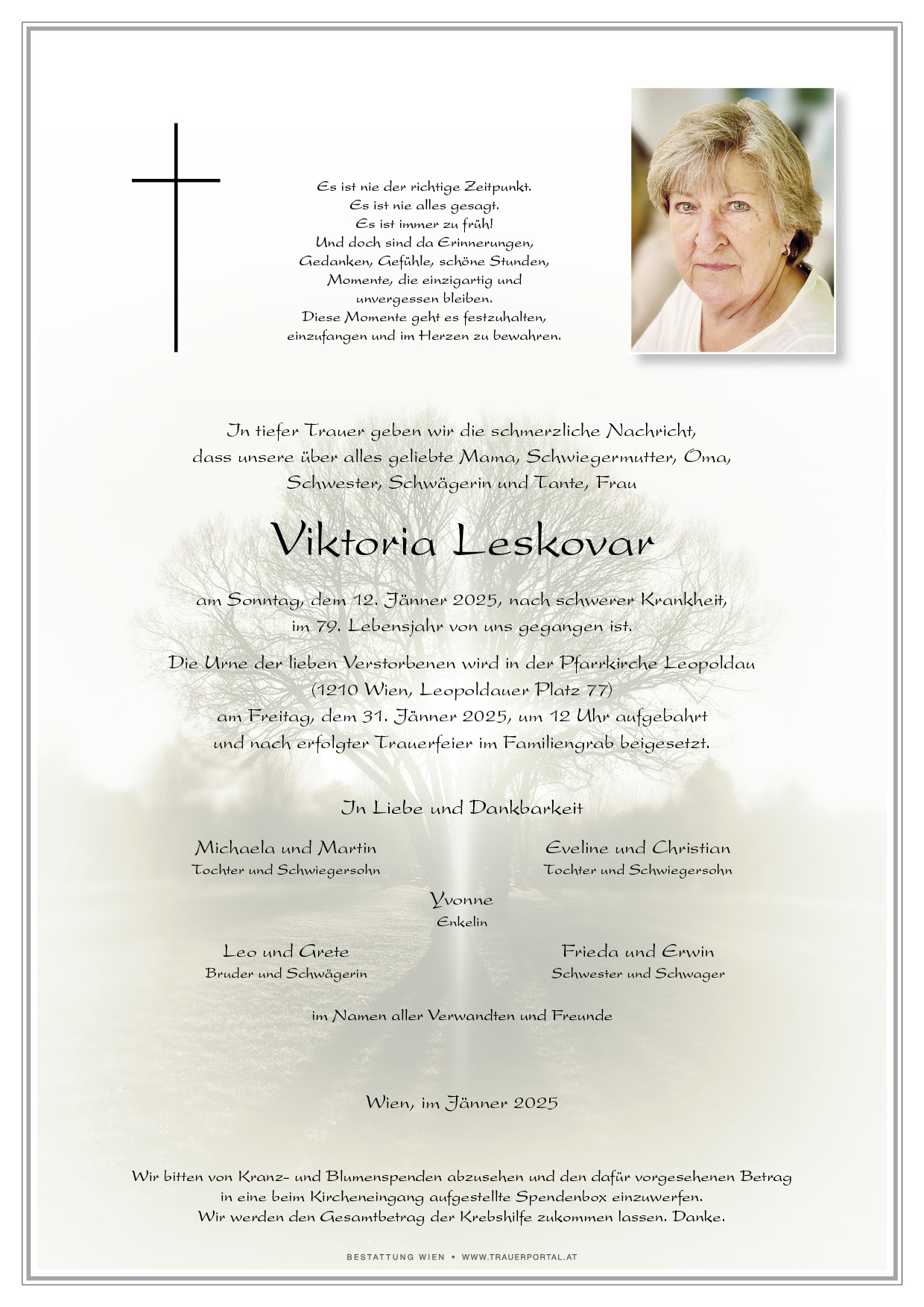 Bestattung wurde durchgeführt von: Bestattung Wien Bestattung Wien GmbH Simmeringer Hauptstraße 339 1110 - Wien (Simmering) Tel.: 01 501950 zum Bestatter