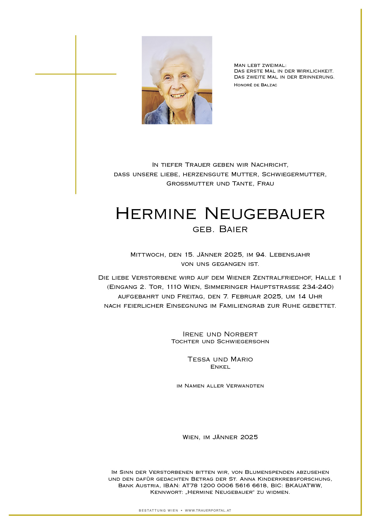 Bestattung wurde durchgeführt von: Bestattung Wien Bestattung Wien GmbH Simmeringer Hauptstraße 339 1110 - Wien (Simmering) Tel.: 01 501950 zum Bestatter