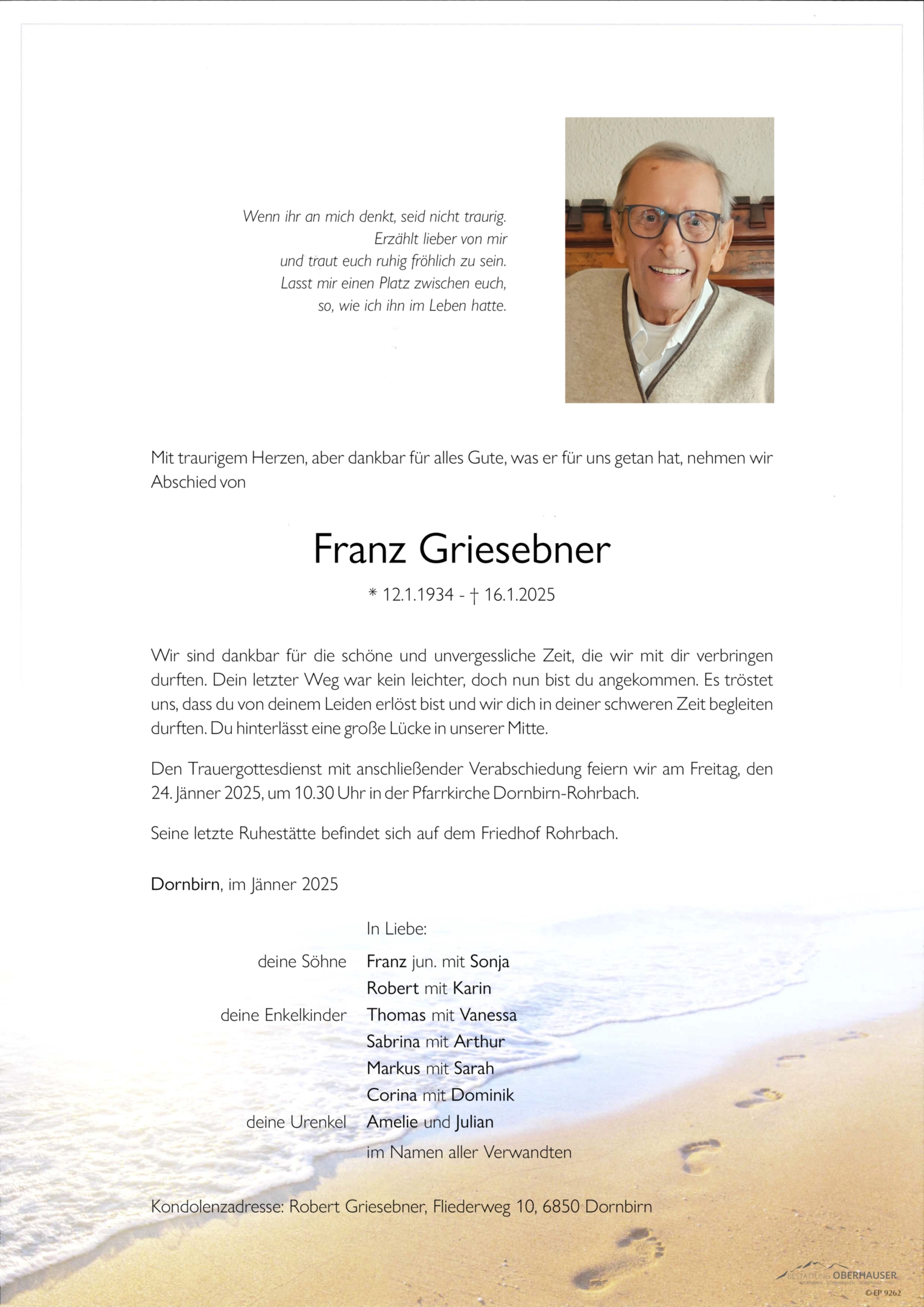 Friedhof Dornbirn - Rohrbach, † 16.01.2025 (91 Jahre)