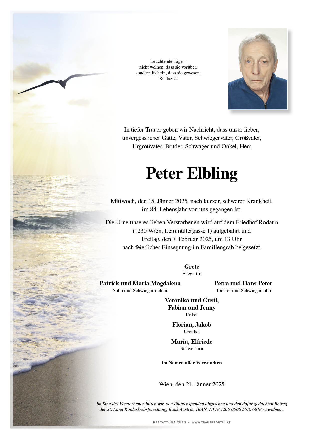Bestattung wurde durchgeführt von: Bestattung Wien Bestattung Wien GmbH Simmeringer Hauptstraße 339 1110 - Wien (Simmering) Tel.: 01 501950 zum Bestatter
