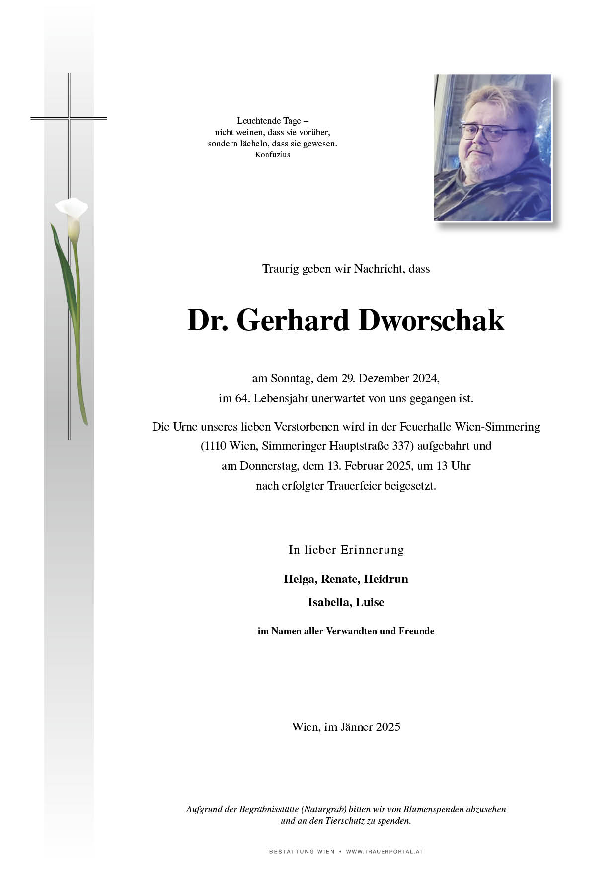 Bestattung wurde durchgeführt von: Bestattung Wien Bestattung Wien GmbH Simmeringer Hauptstraße 339 1110 - Wien (Simmering) Tel.: 01 501950 zum Bestatter