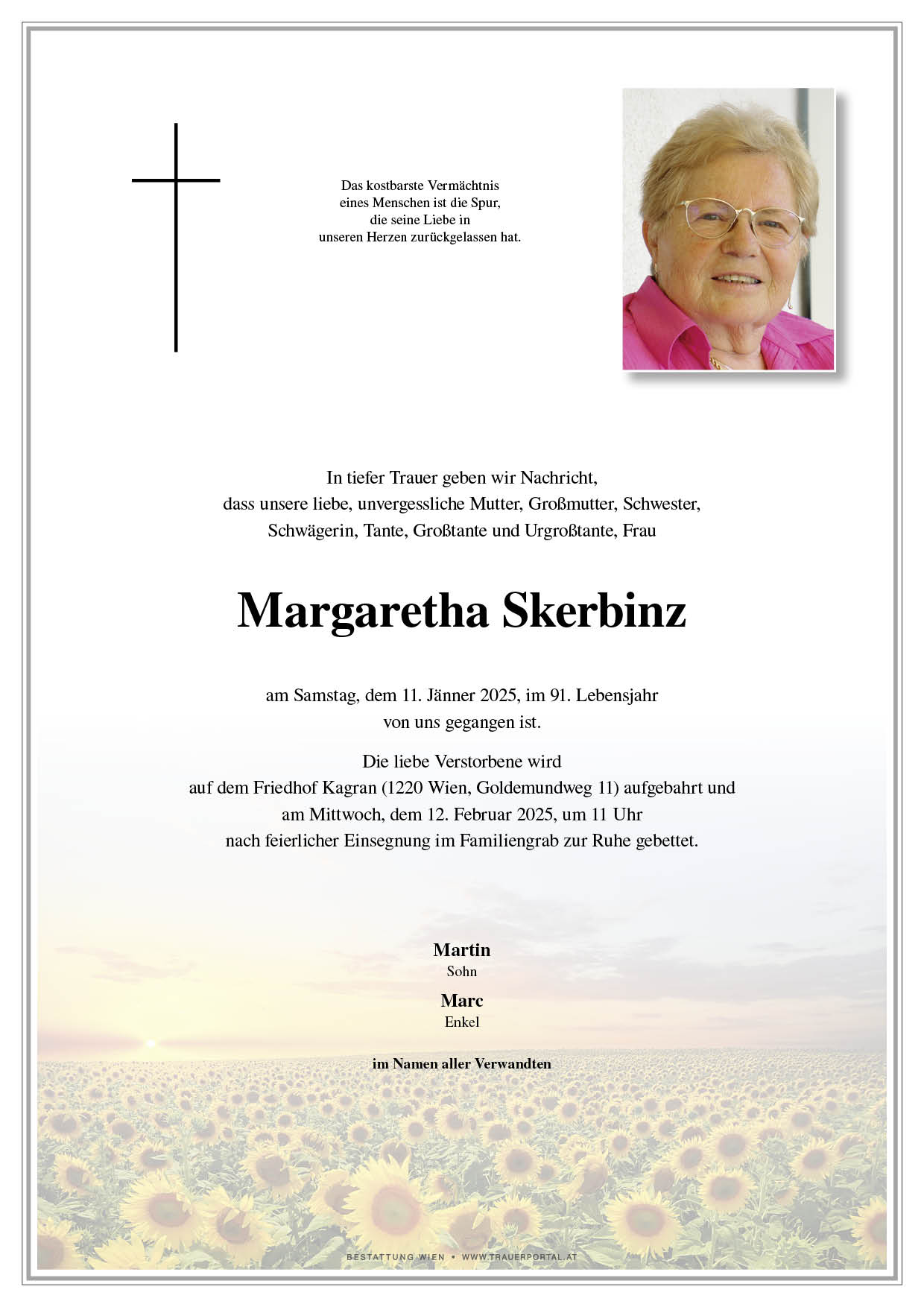 Bestattung wurde durchgeführt von: Bestattung Wien Bestattung Wien GmbH Simmeringer Hauptstraße 339 1110 - Wien (Simmering) Tel.: 01 501950 zum Bestatter