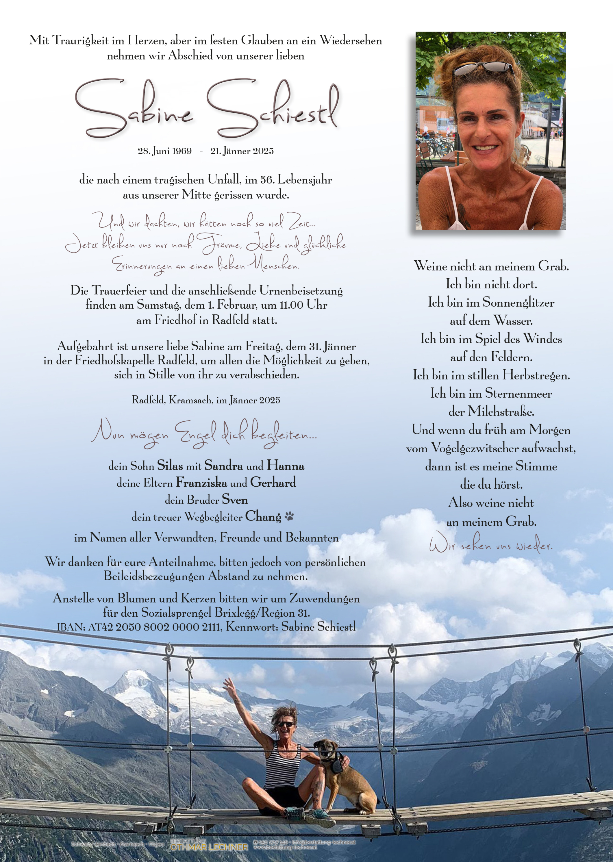 Jetzt haben dich doch die Englein mitgenommen🖤Ruhe in Frieden dort oben liebe Sabine🖤24.01.2025 03:51 - Heidi & Hannes Urban mit Familie
