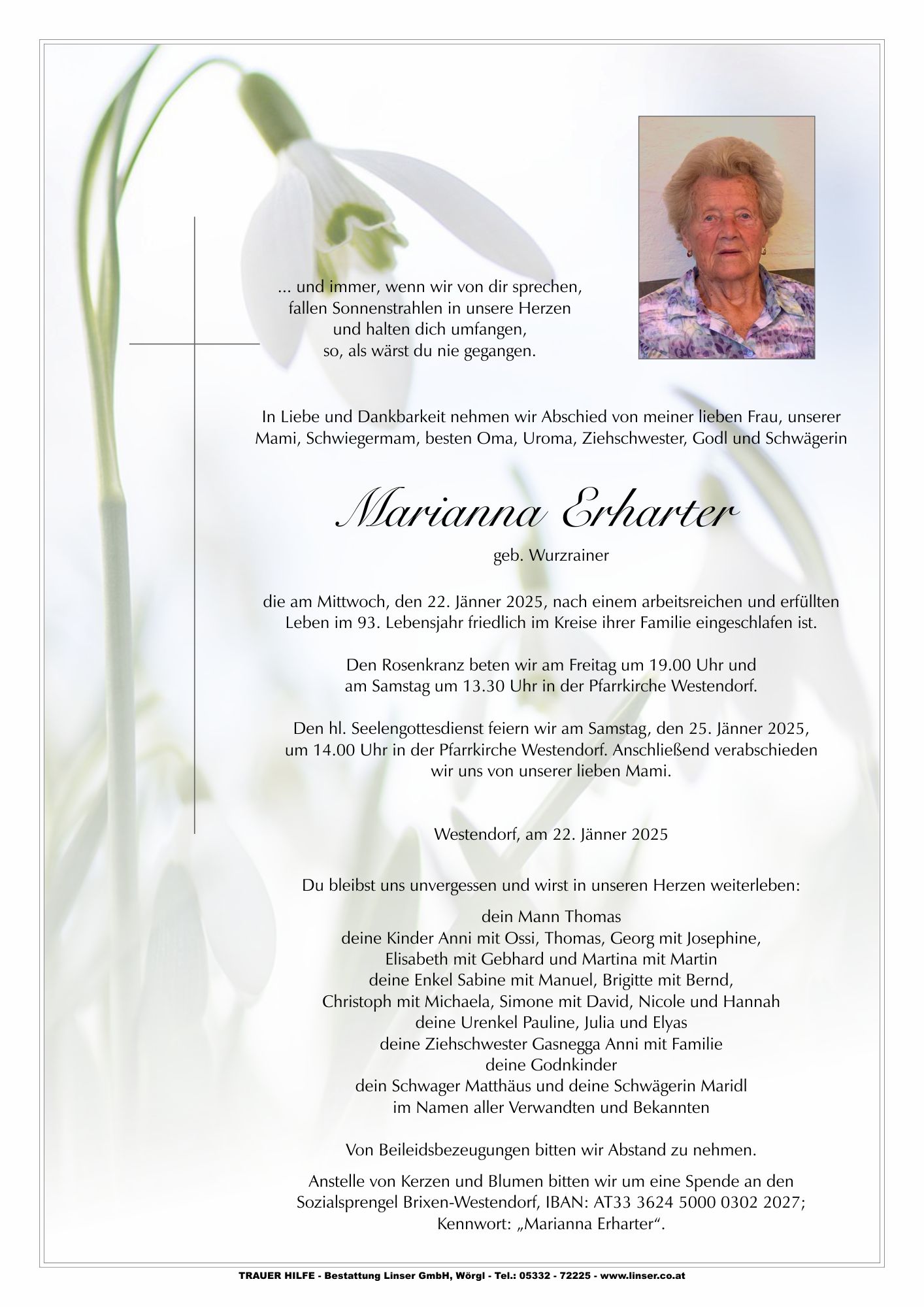 Bestattung wurde durchgeführt von: Walter Linser TrauerHilfe Bestattung Linser GmbH Wildschönauerstraße 41 6300 - Wörgl Tel.: 05332 72225 zum Bestatter