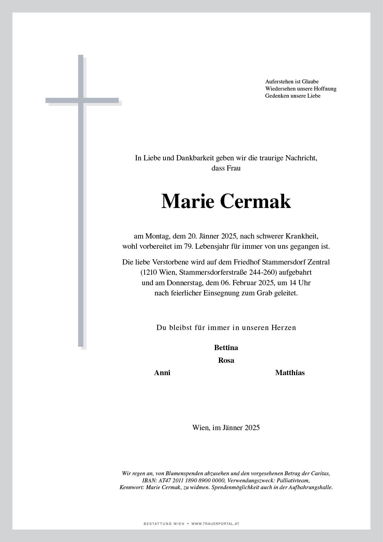 Bestattung wurde durchgeführt von: Bestattung Wien Bestattung Wien GmbH Simmeringer Hauptstraße 339 1110 - Wien (Simmering) Tel.: 01 501950 zum Bestatter