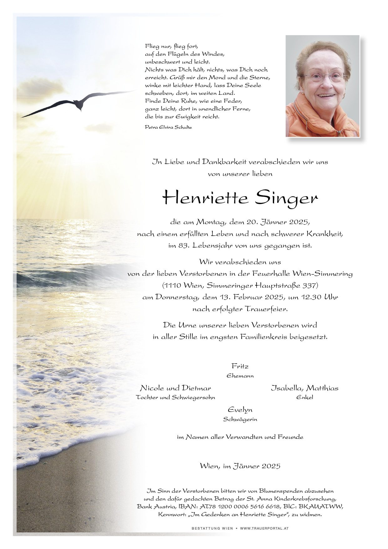 Bestattung wurde durchgeführt von: Bestattung Wien Bestattung Wien GmbH Simmeringer Hauptstraße 339 1110 - Wien (Simmering) Tel.: 01 501950 zum Bestatter