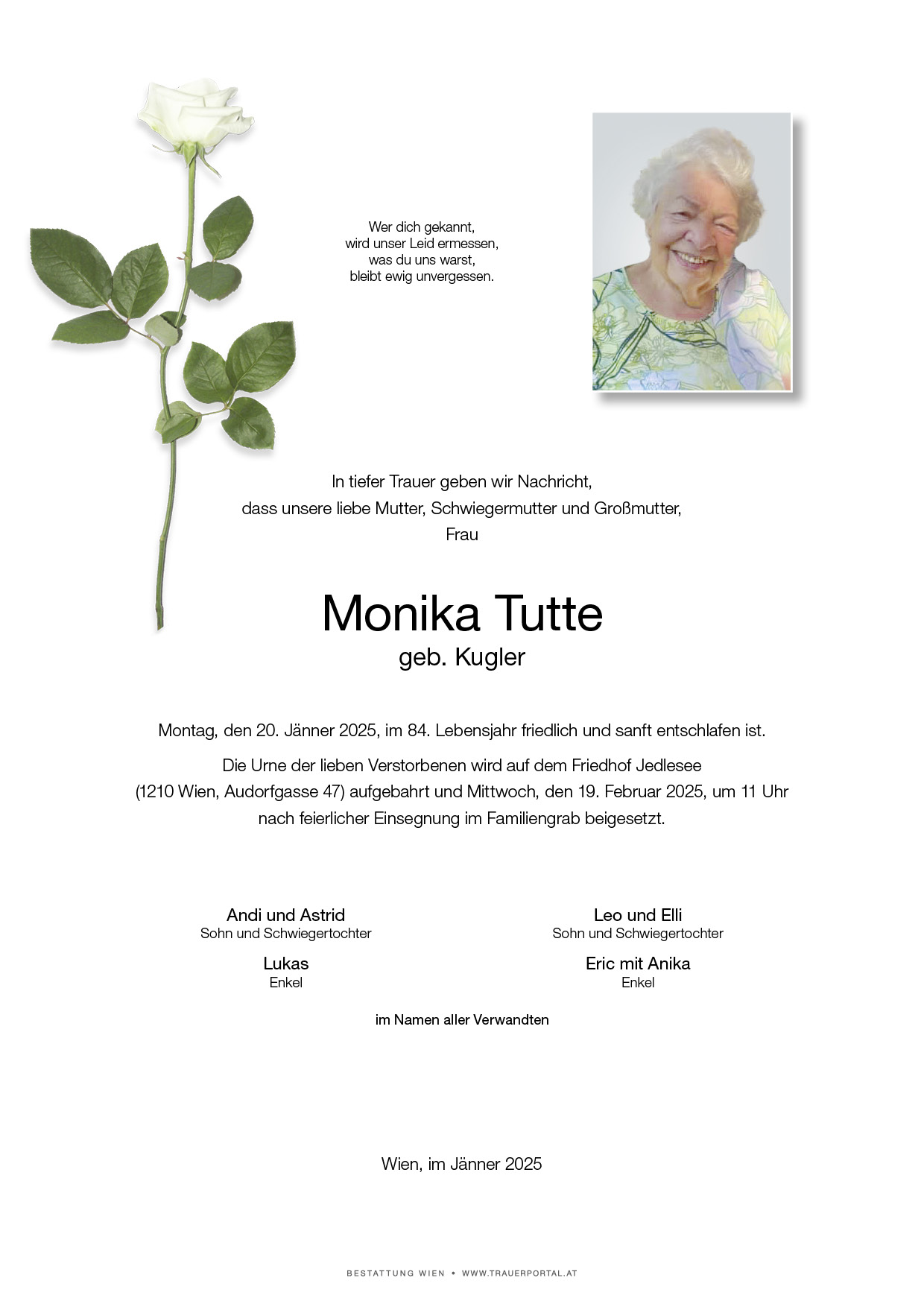 Bestattung wurde durchgeführt von: Bestattung Wien Bestattung Wien GmbH Simmeringer Hauptstraße 339 1110 - Wien (Simmering) Tel.: 01 501950 zum Bestatter