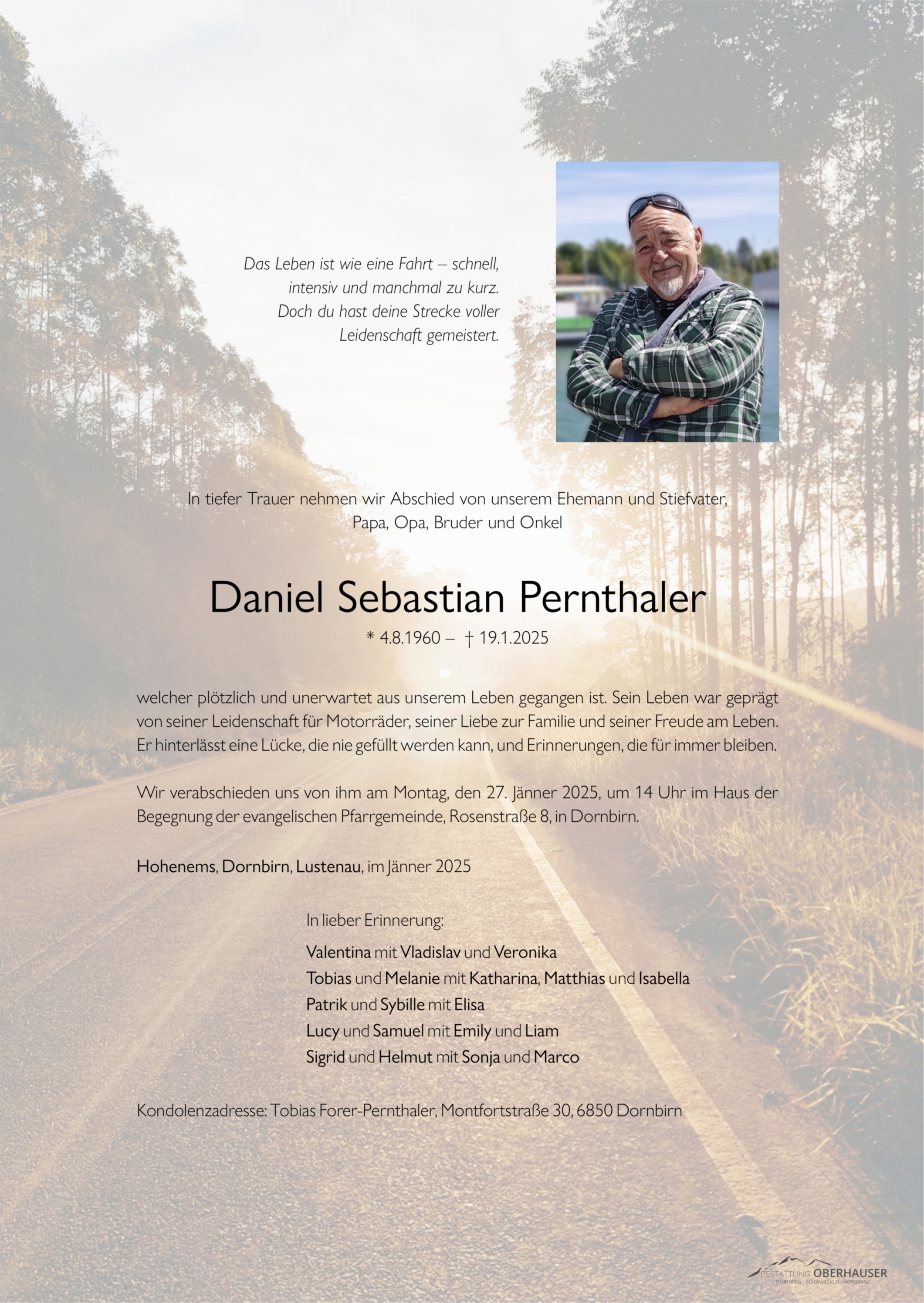 Bestattung wurde durchgeführt von: Carolin und Christoph Metzler Bestattung Oberhauser GesmbH Franz-Michael-Felder Straße 10 6850 - Dornbirn Tel.: 05572/20630 zum Bestatter