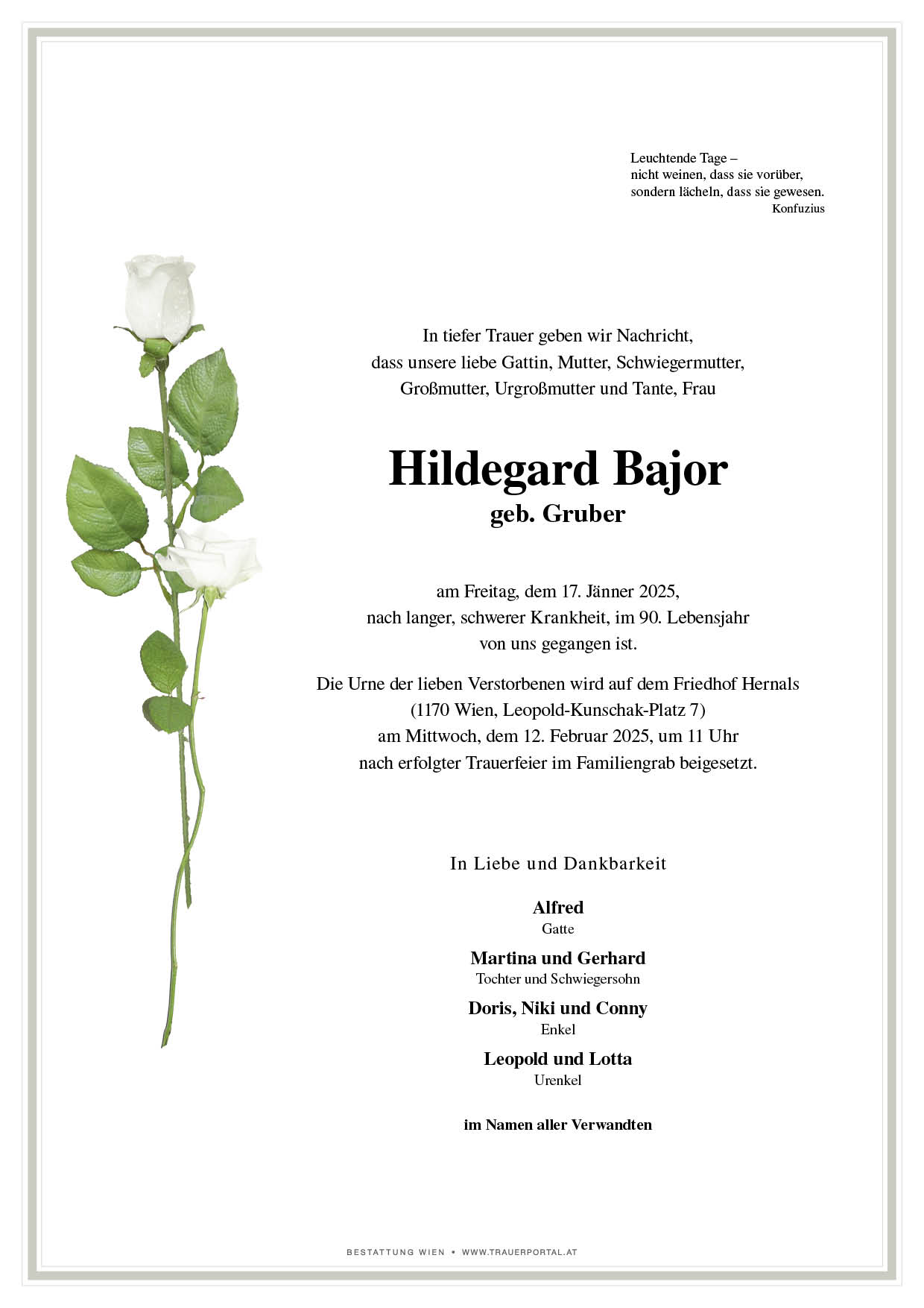 Bestattung wurde durchgeführt von: Bestattung Wien Bestattung Wien GmbH Simmeringer Hauptstraße 339 1110 - Wien (Simmering) Tel.: 01 501950 zum Bestatter