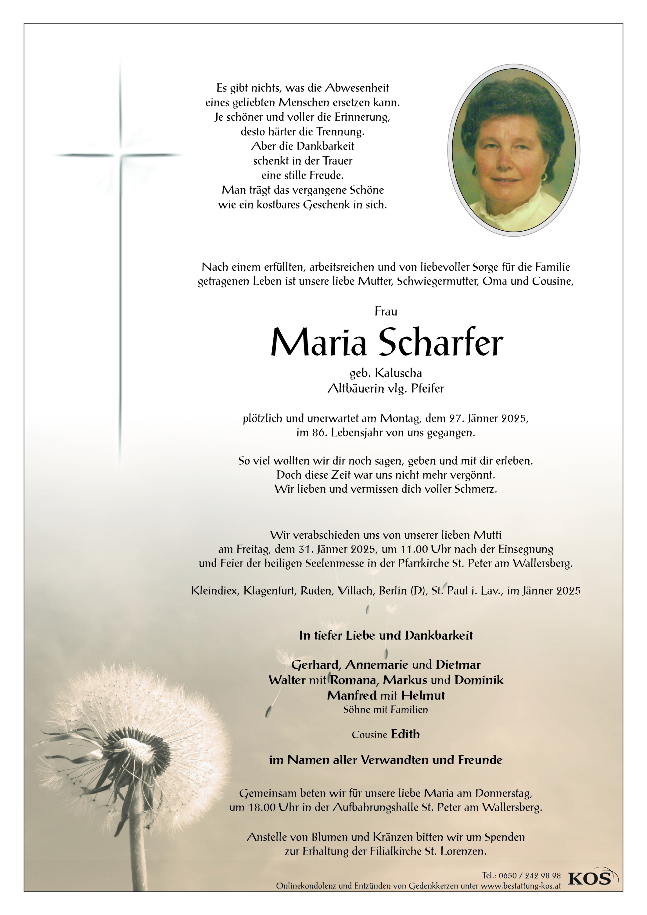 Friedhof St. Peter am Wallersberg, † 27.01.2025 (85 Jahre)