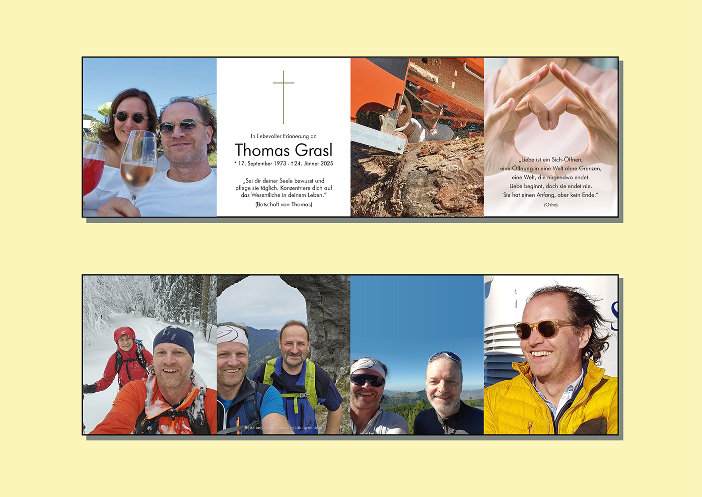 Tief erschüttert möchte ich euch meine Aufrichte Anteilnahme entbieten und wünsche euch ganz viel Kraft in diesen schweren Stunden des Abschieds und der Trauer. Die Harmonie und Liebe zwischen euch war unübersehbar und Thomas war mit seiner äußerst freundlichen Art und seinem Wesen einfach ein wunderbarer Mensch. Mögen die vielen schönen Erinnerungen euch allen bald wieder ein Lächeln ins Gesicht zaubern und lasst ihn bei euch sein, als wäre er nie gegangen.