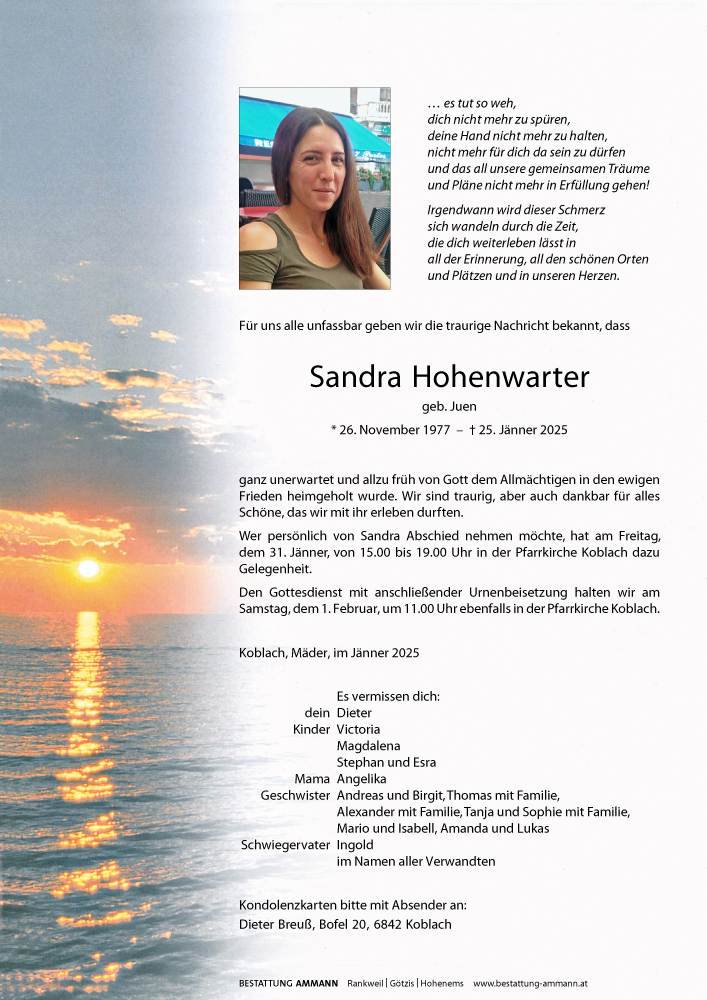 Neue Kerze für Sandra Hohenwarter entzünden.