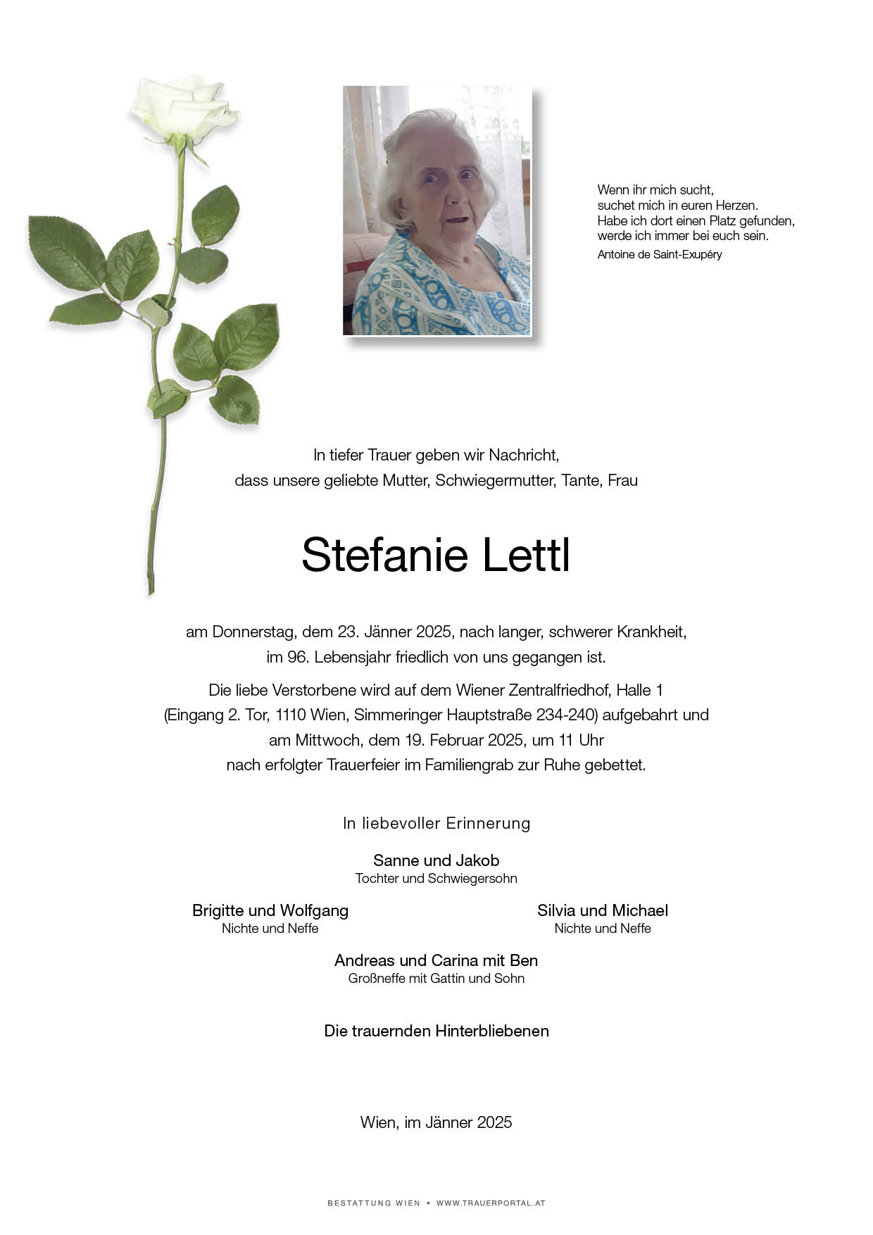 Bestattung wurde durchgeführt von: Bestattung Wien Bestattung Wien GmbH Simmeringer Hauptstraße 339 1110 - Wien (Simmering) Tel.: 01 501950 zum Bestatter