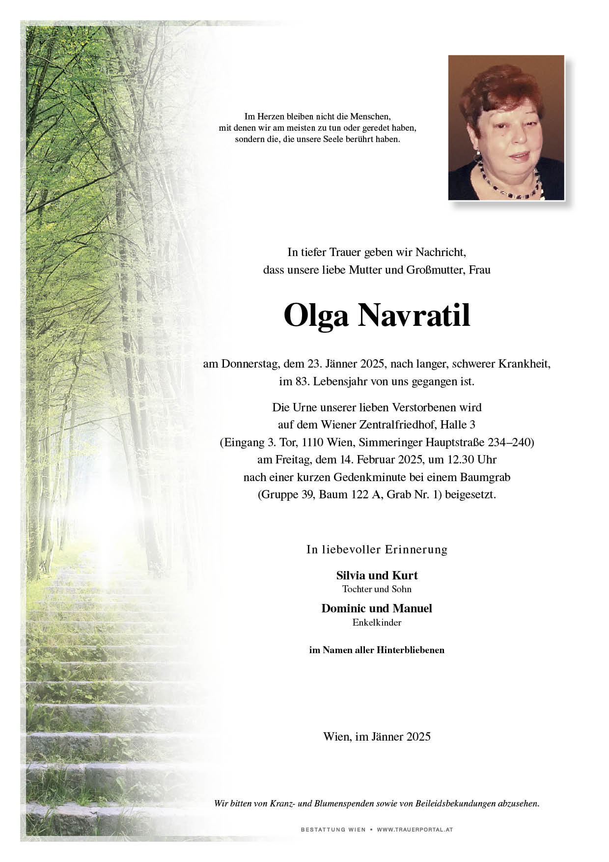 Bestattung wurde durchgeführt von: Bestattung Wien Bestattung Wien GmbH Simmeringer Hauptstraße 339 1110 - Wien (Simmering) Tel.: 01 501950 zum Bestatter