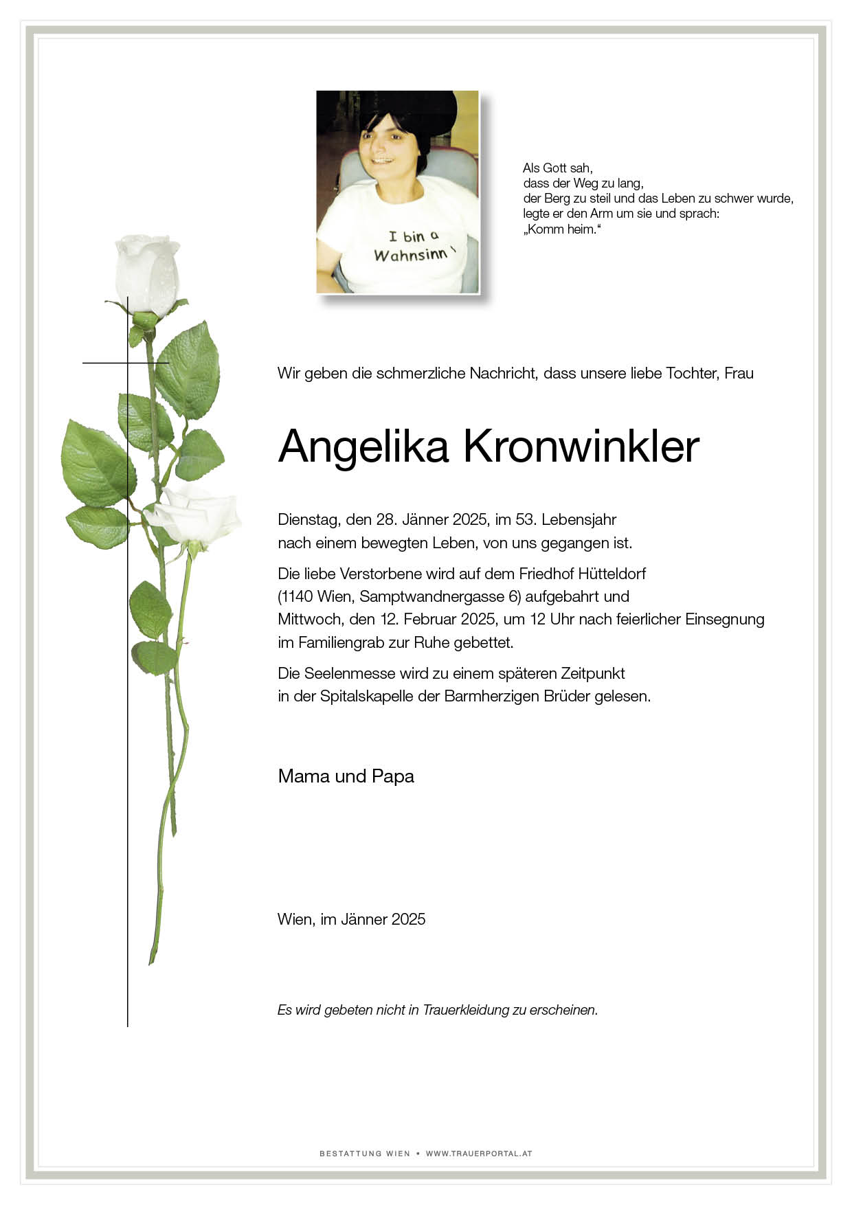 Neue Kerze für Angelika Kronwinkler entzünden.