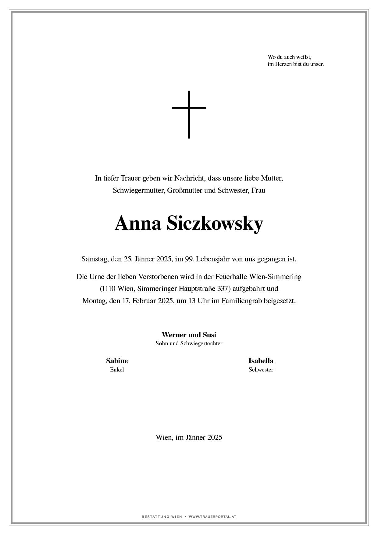 Bestattung wurde durchgeführt von: Bestattung Wien Bestattung Wien GmbH Simmeringer Hauptstraße 339 1110 - Wien (Simmering) Tel.: 01 501950 zum Bestatter