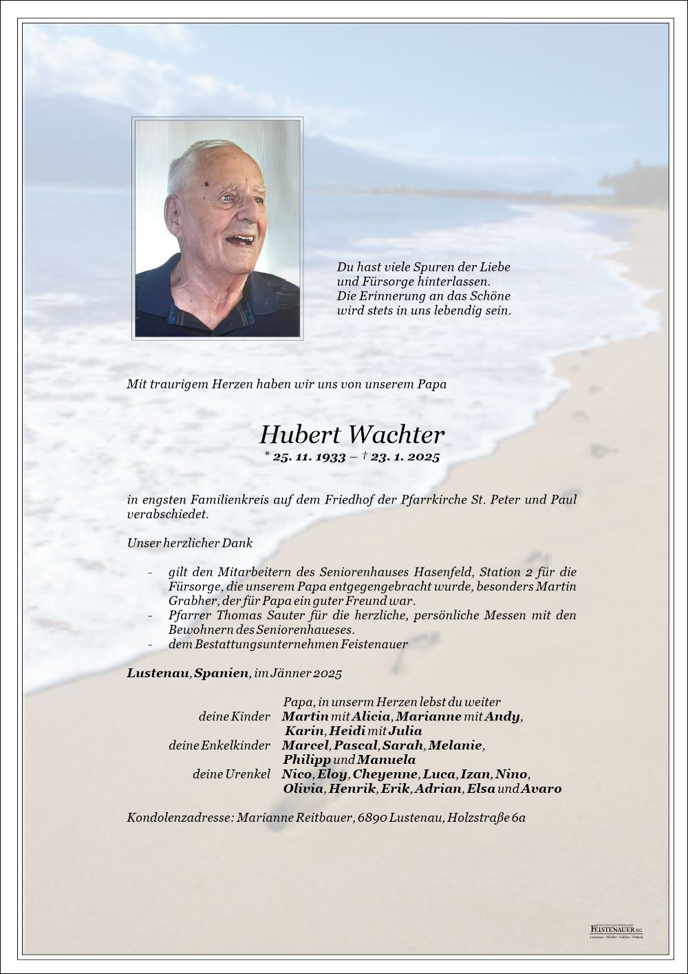 Bestattung wurde durchgeführt von: Angelika Matheisl Bestattung Feistenauer Holzstraße 54 6890 - Lustenau Tel.: 05577 87100 zum Bestatter
