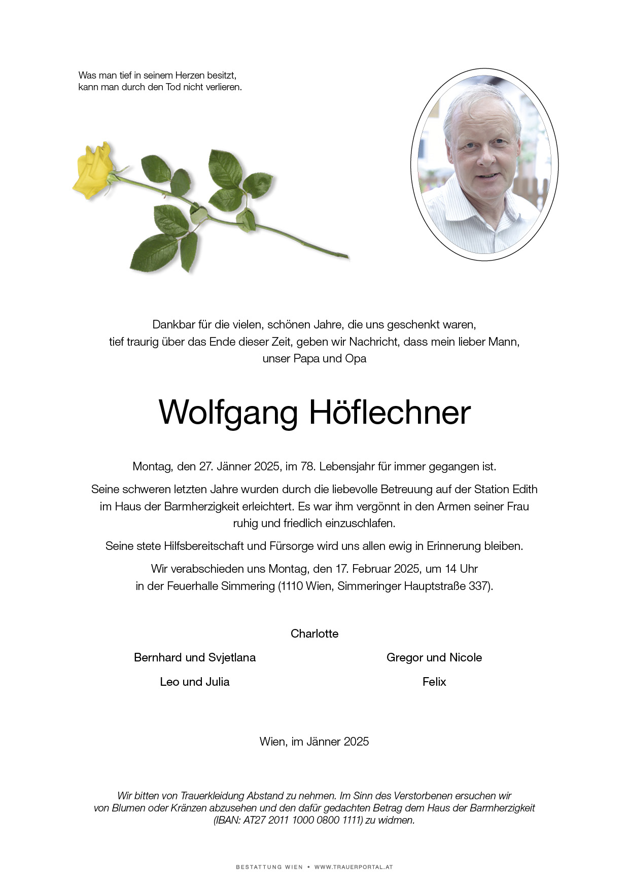 Neue Kerze für Wolfgang Höflechner entzünden.