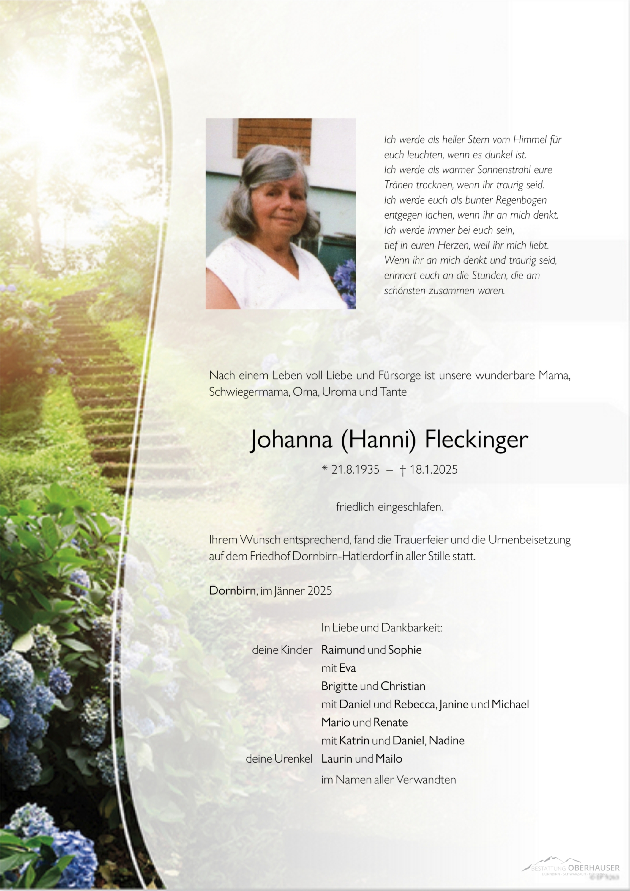 Friedhof Dornbirn - Hatlerdorf, † 18.01.2025 (89 Jahre)