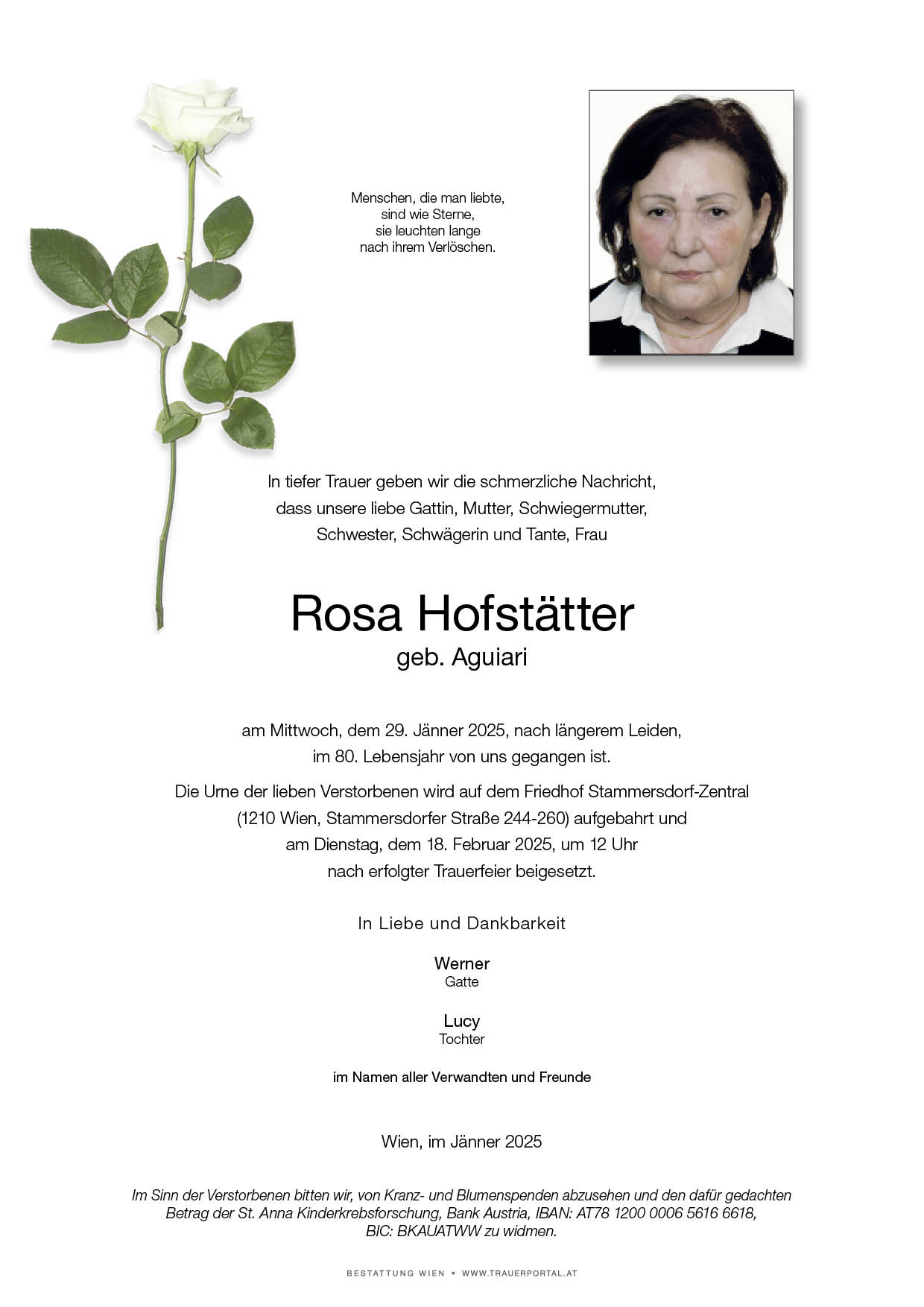 Bestattung wurde durchgeführt von: Bestattung Wien Bestattung Wien GmbH Simmeringer Hauptstraße 339 1110 - Wien (Simmering) Tel.: 01 501950 zum Bestatter