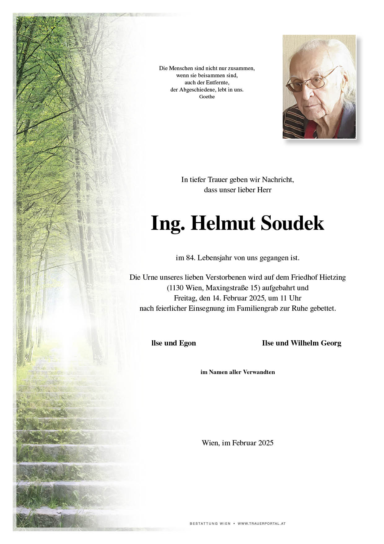 Bestattung wurde durchgeführt von: Bestattung Wien Bestattung Wien GmbH Simmeringer Hauptstraße 339 1110 - Wien (Simmering) Tel.: 01 501950 zum Bestatter