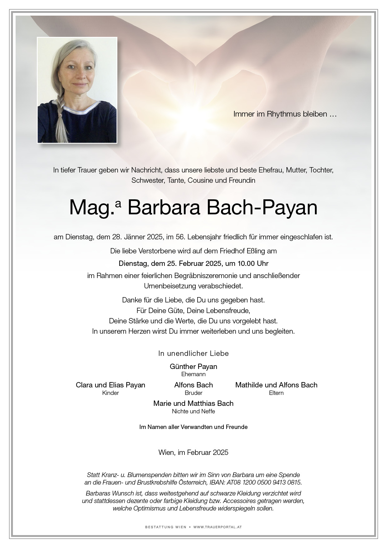 Bestattung wurde durchgeführt von: Bestattung Wien Bestattung Wien GmbH Simmeringer Hauptstraße 339 1110 - Wien (Simmering) Tel.: 01 501950 zum Bestatter