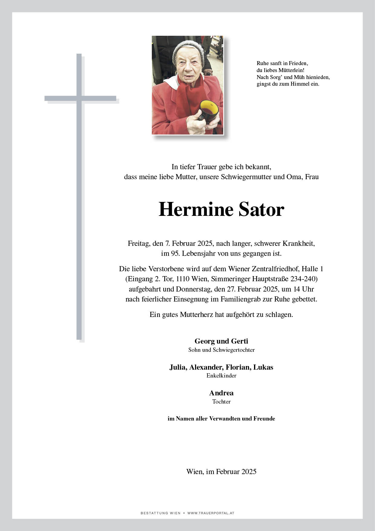 Bestattung wurde durchgeführt von: Bestattung Wien Bestattung Wien GmbH Simmeringer Hauptstraße 339 1110 - Wien (Simmering) Tel.: 01 501950 zum Bestatter