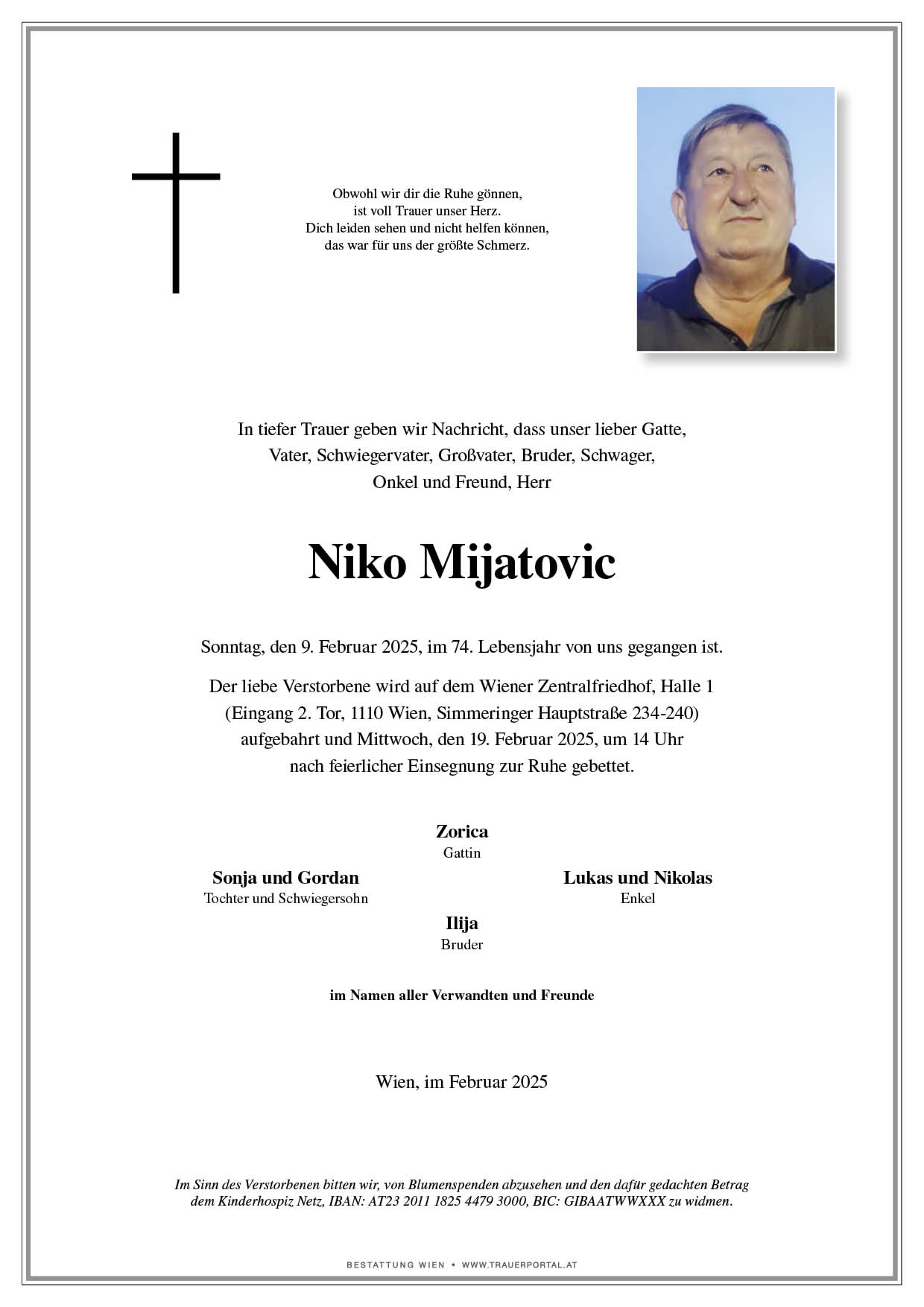Friedhof † 09.02.2025 (73 Jahre)