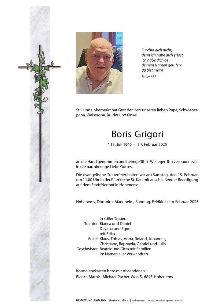 Friedhof Hohenems, Stadtfriedhof, † 07.02.2025 (78 Jahre)