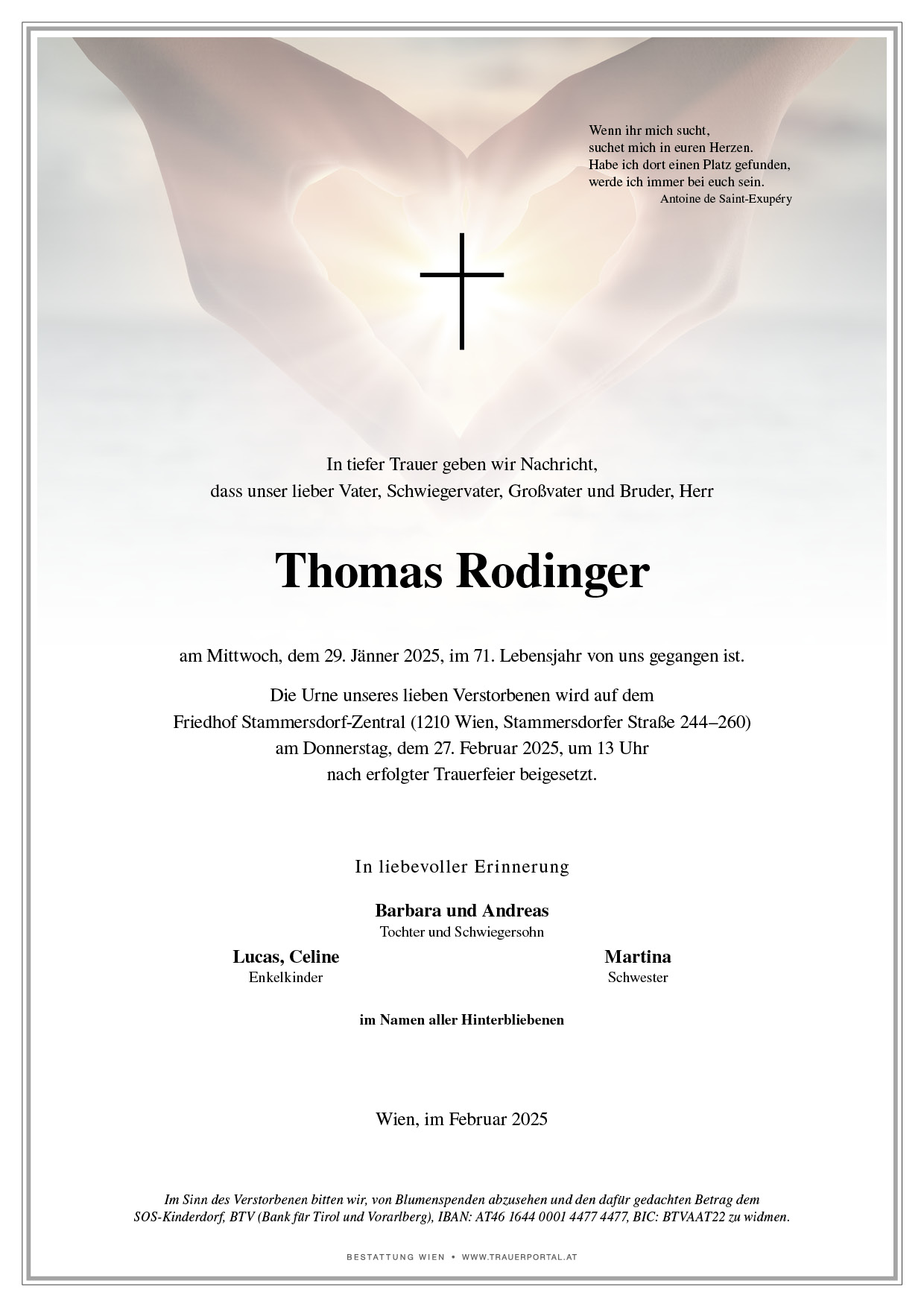 Bestattung wurde durchgeführt von: Bestattung Wien Bestattung Wien GmbH Simmeringer Hauptstraße 339 1110 - Wien (Simmering) Tel.: 01 501950 zum Bestatter