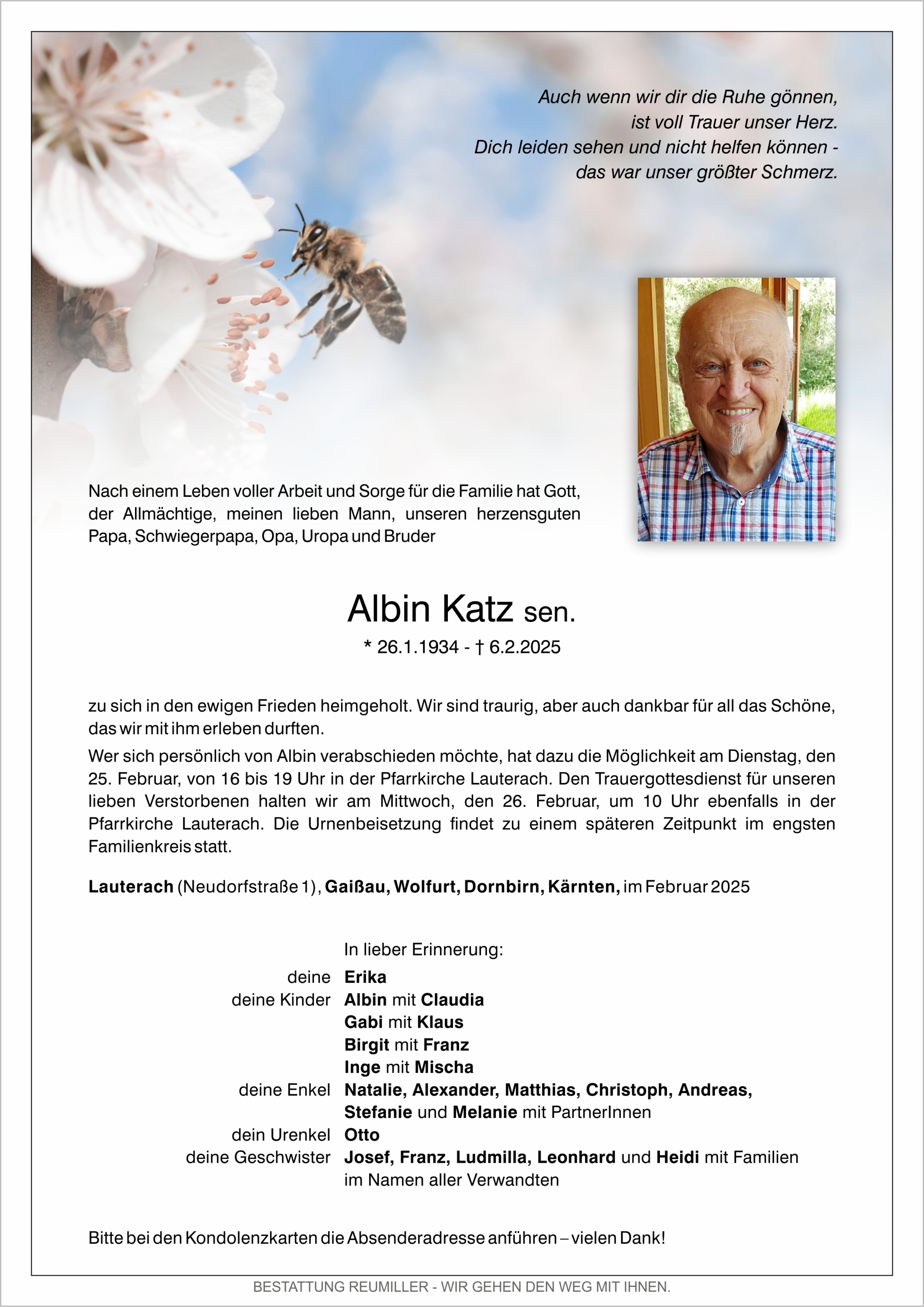 Friedhof Lauterach, † 06.02.2025 (91 Jahre)