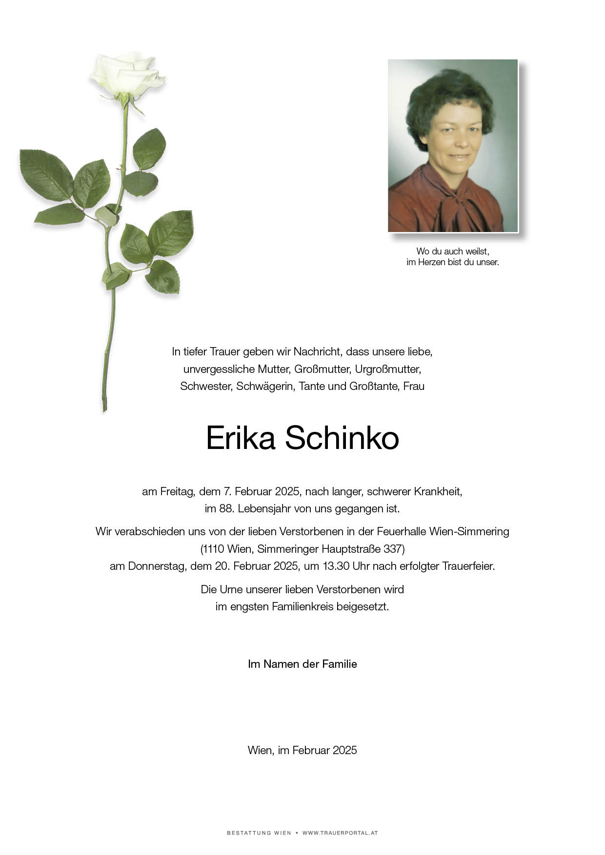 Bestattung wurde durchgeführt von: Bestattung Wien Bestattung Wien GmbH Simmeringer Hauptstraße 339 1110 - Wien (Simmering) Tel.: 01 501950 zum Bestatter
