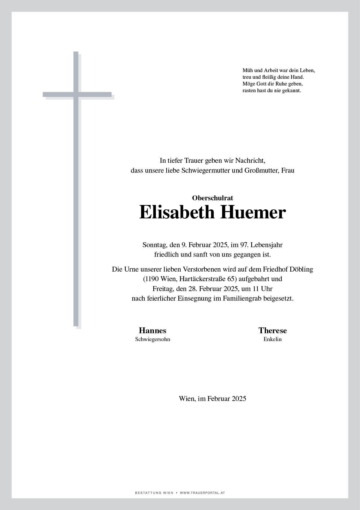 Bestattung wurde durchgeführt von: Bestattung Wien Bestattung Wien GmbH Simmeringer Hauptstraße 339 1110 - Wien (Simmering) Tel.: 01 501950 zum Bestatter