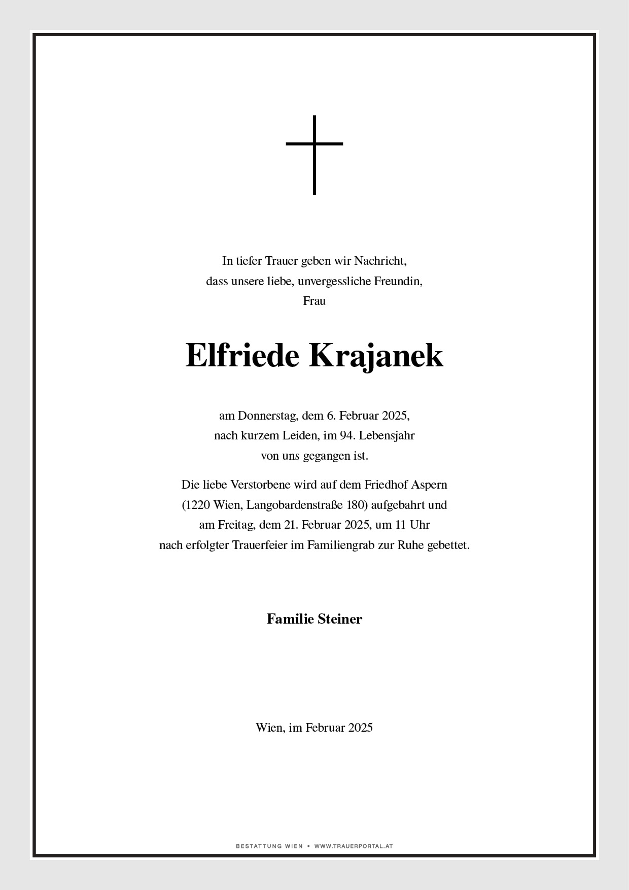 Bestattung wurde durchgeführt von: Bestattung Wien Bestattung Wien GmbH Simmeringer Hauptstraße 339 1110 - Wien (Simmering) Tel.: 01 501950 zum Bestatter