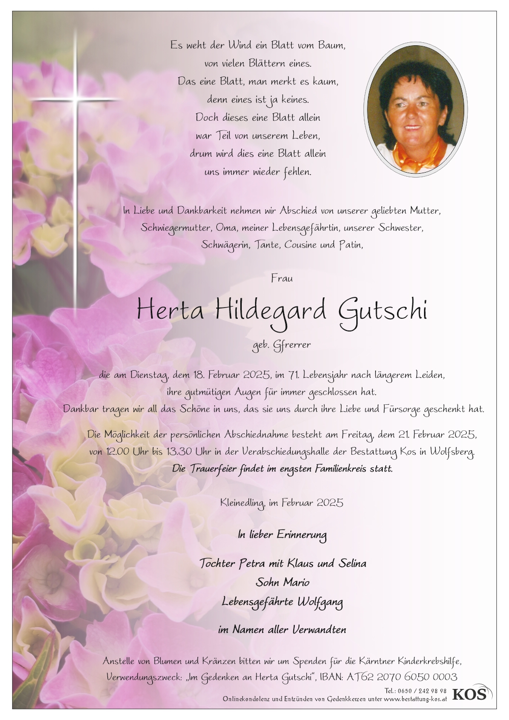 Neue Kerze für Herta Hildegard Gutschi entzünden.
