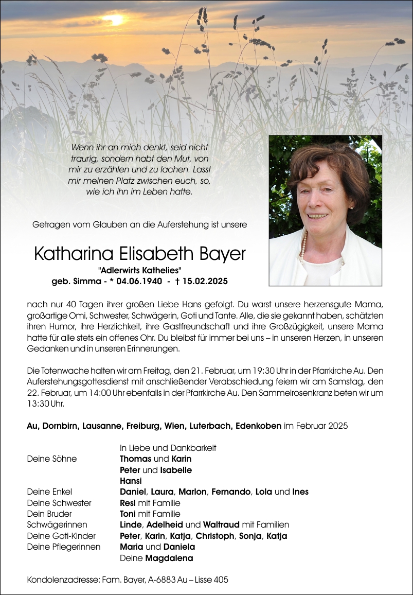 Friedhof Au, † 15.02.2025 (84 Jahre)