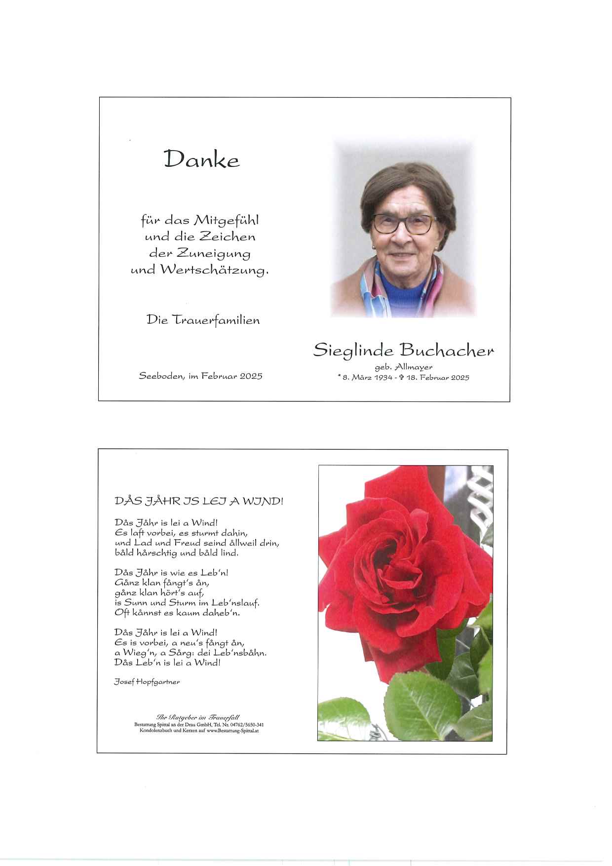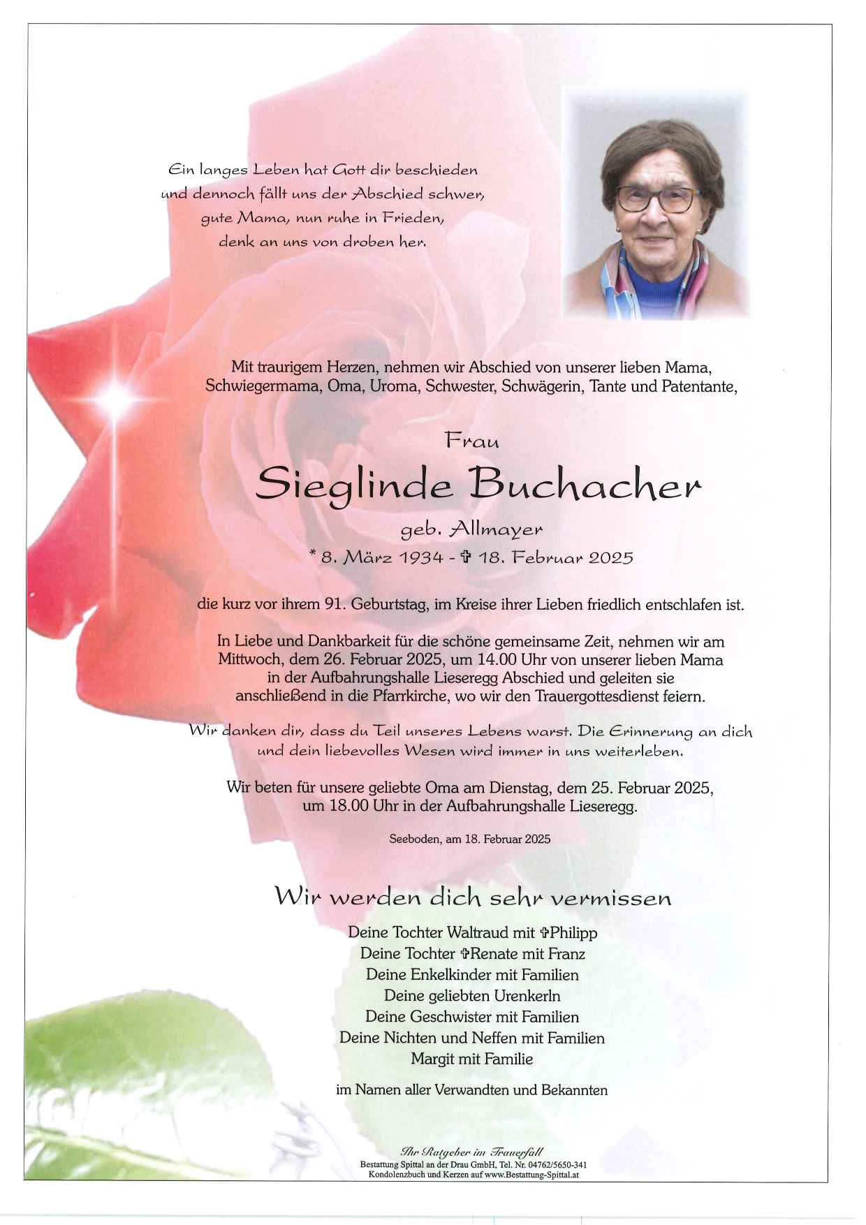 Neue Kerze für Sieglinde Buchacher entzünden.
