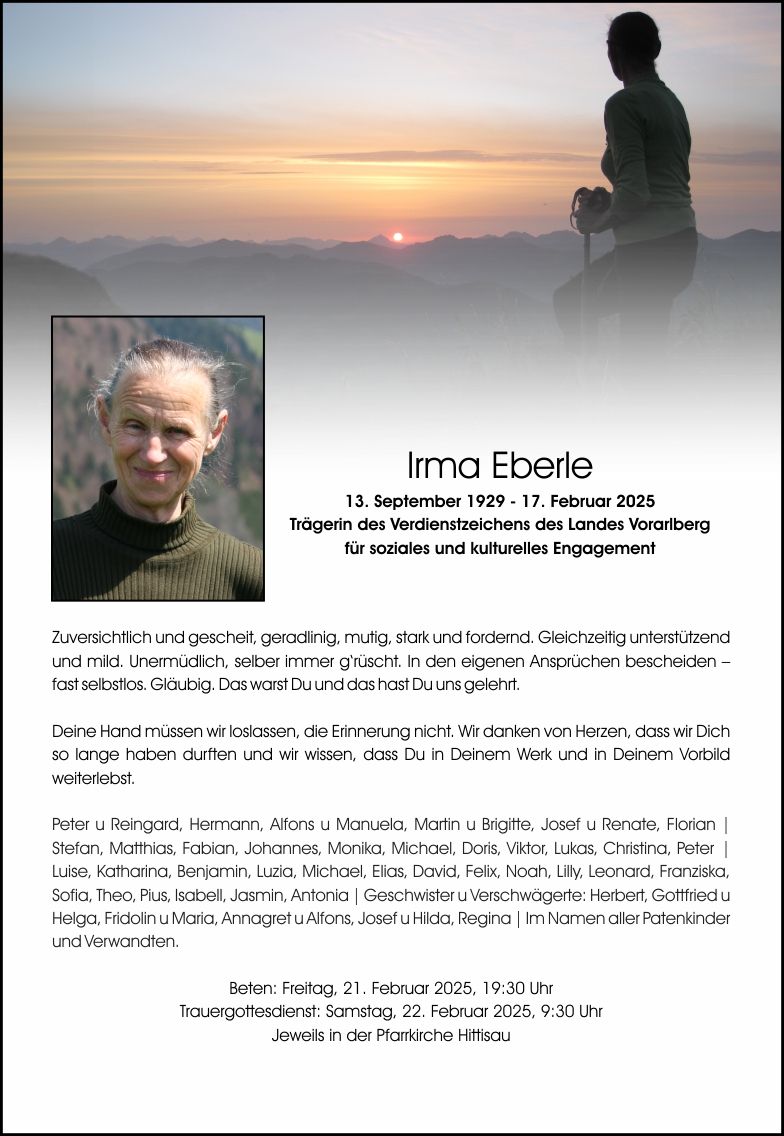 Friedhof Hittisau, † 17.02.2025 (95 Jahre)