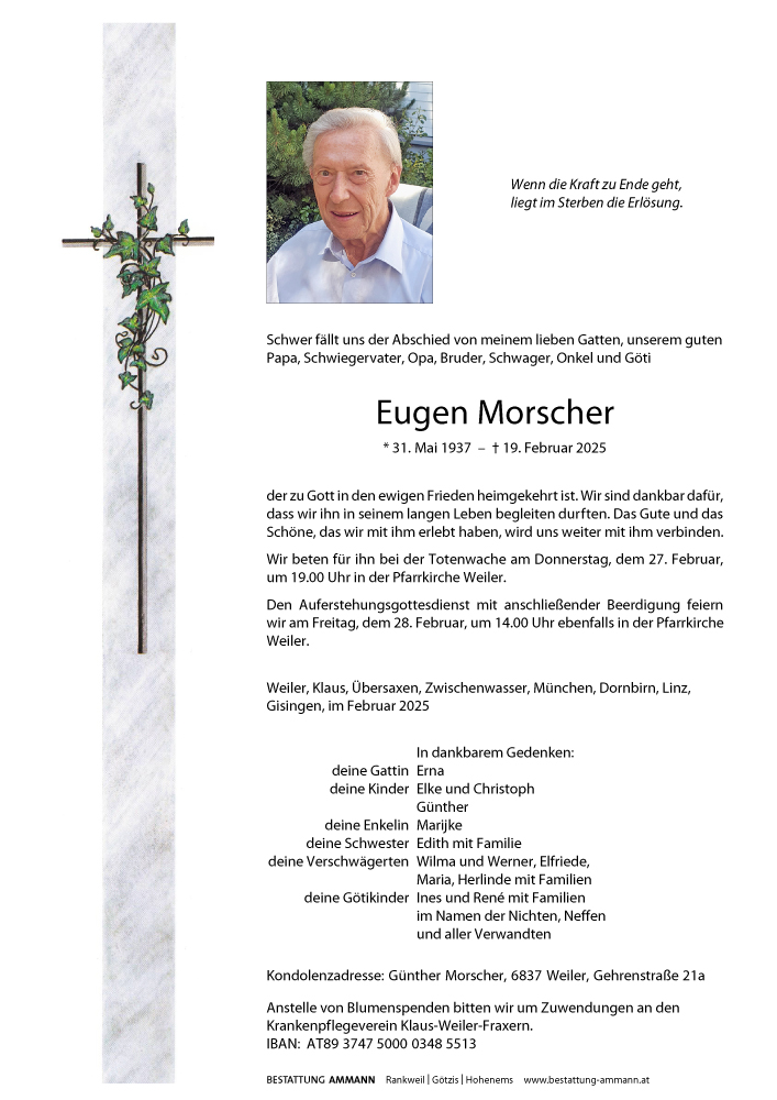Bestattung wurde durchgeführt von: Bestattung Ammann Rankweil Ammann Bestattung GmbH Rankweil Splügenweg 1 6830 - Rankweil Tel.: 05522 42104 zum Bestatter