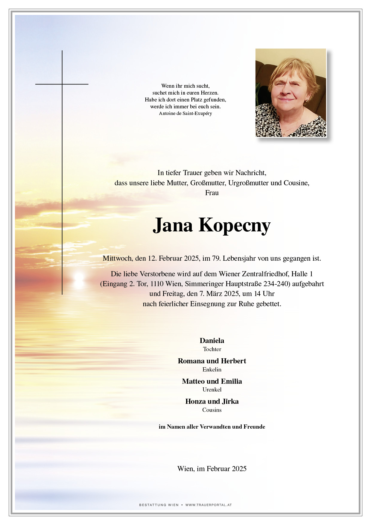 Bestattung wurde durchgeführt von: Bestattung Wien Bestattung Wien GmbH Simmeringer Hauptstraße 339 1110 - Wien (Simmering) Tel.: 01 501950 zum Bestatter