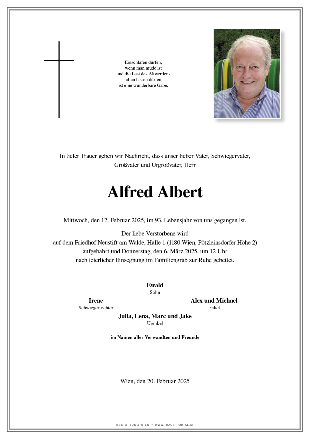 Bestattung wurde durchgeführt von: Bestattung Wien Bestattung Wien GmbH Simmeringer Hauptstraße 339 1110 - Wien (Simmering) Tel.: 01 501950 zum Bestatter
