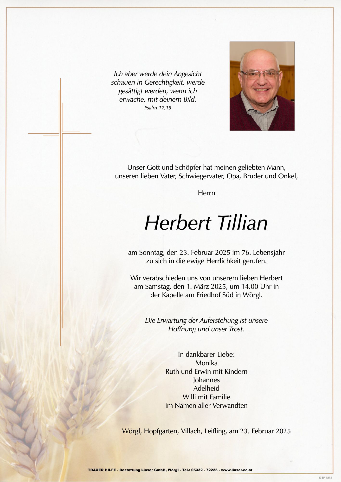Bestattung wurde durchgeführt von: Walter Linser TrauerHilfe Bestattung Linser GmbH Wildschönauerstraße 41 6300 - Wörgl Tel.: 05332 72225 zum Bestatter