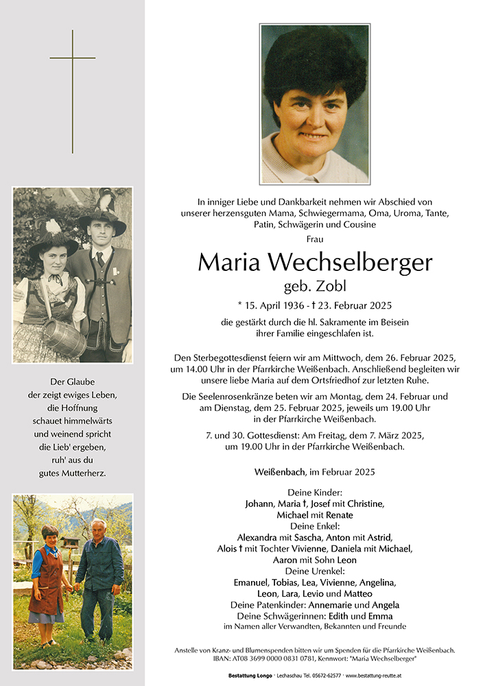 Bestattung wurde durchgeführt von: Claudia Schreieck Bestattung Longo Lechtalerstraße 32a 6600 - Lechaschau Tel.: 05672 62577 zum Bestatter