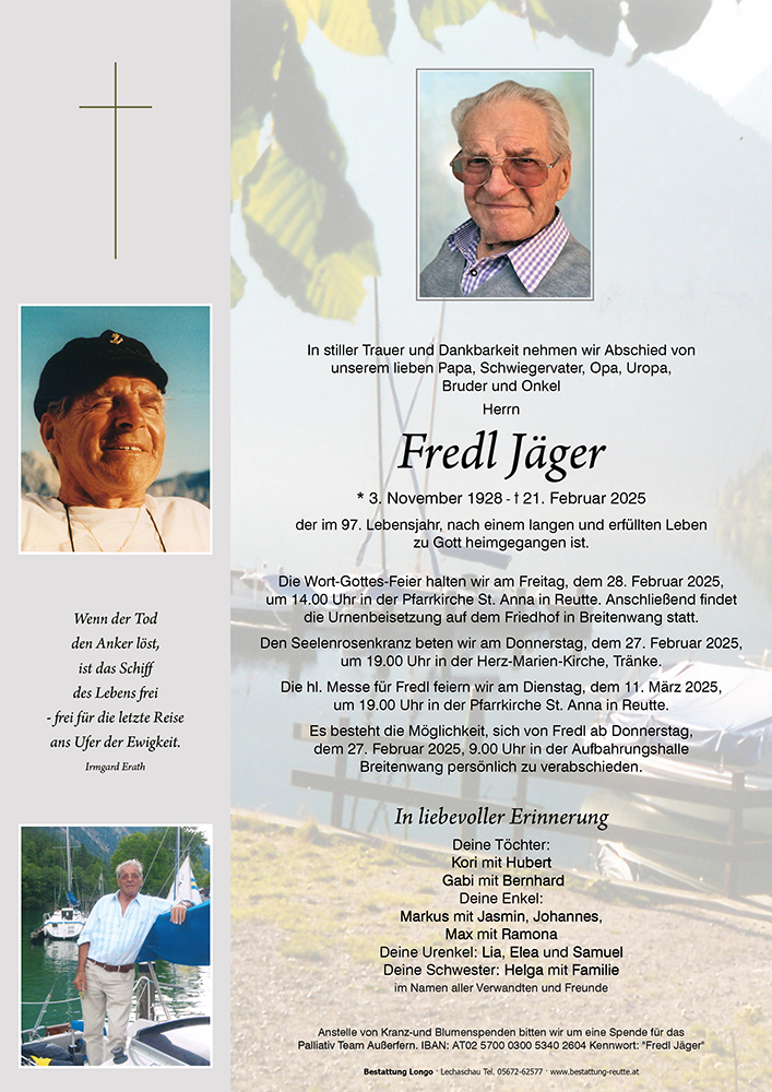 mit tiefem Bedauern habe wir vom Ableben unseres ehemaligen Seglerkollegen Fredl erfahren. Sein langes Leben war geprägt von seiner Leidenschaft für das Segeln, und besonders auf dem Plansee war er eine geschätzte und bewunderte Persönlichkeit.