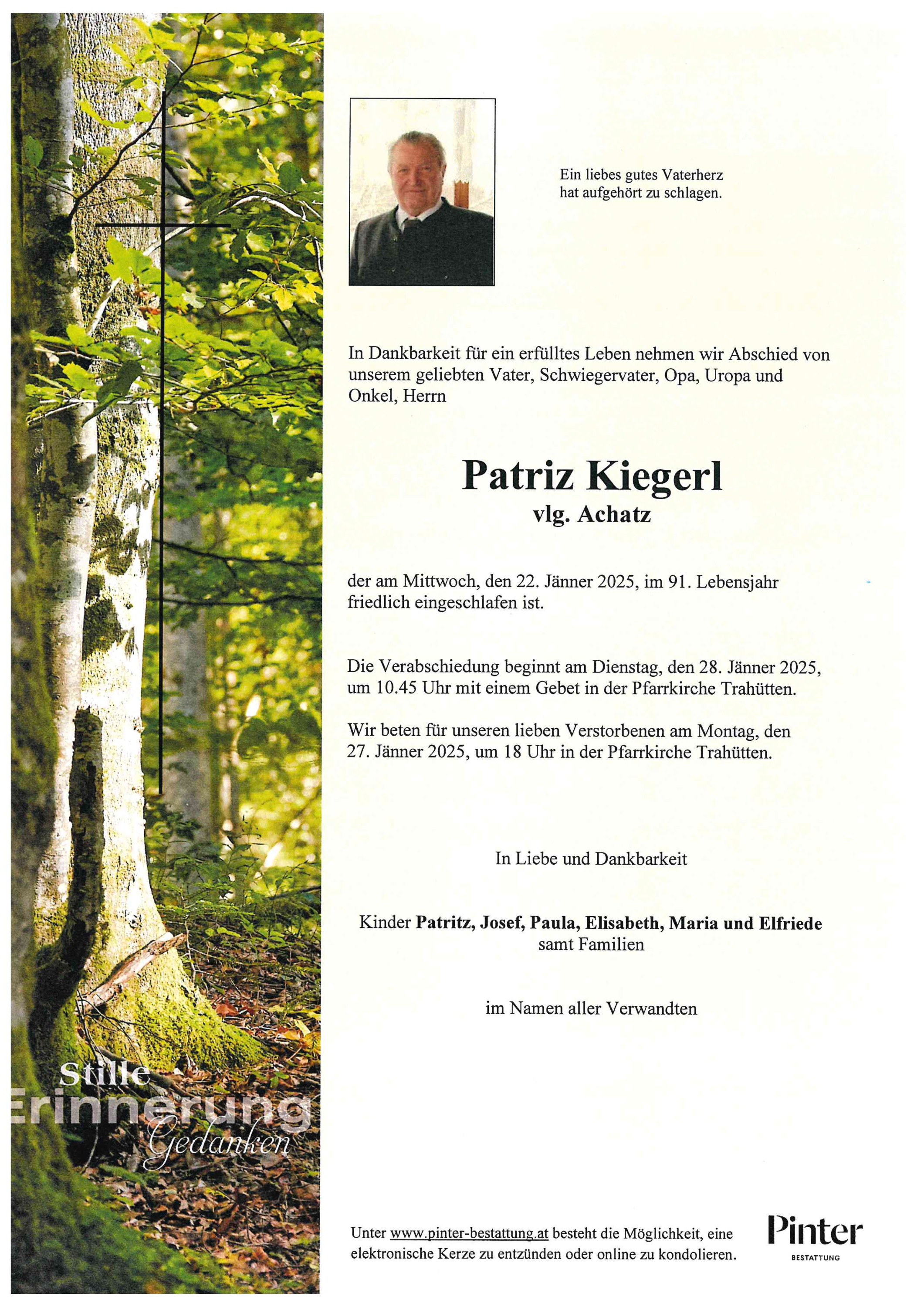 Neue Kerze für Patriz Kiegerl entzünden.