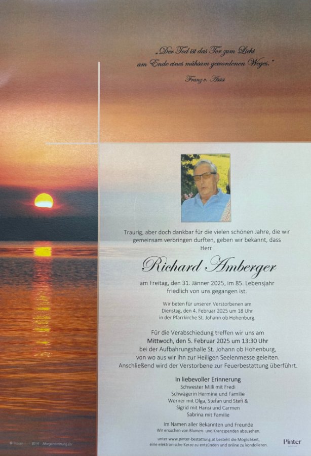 Neue Kerze für Richard Amberger entzünden.