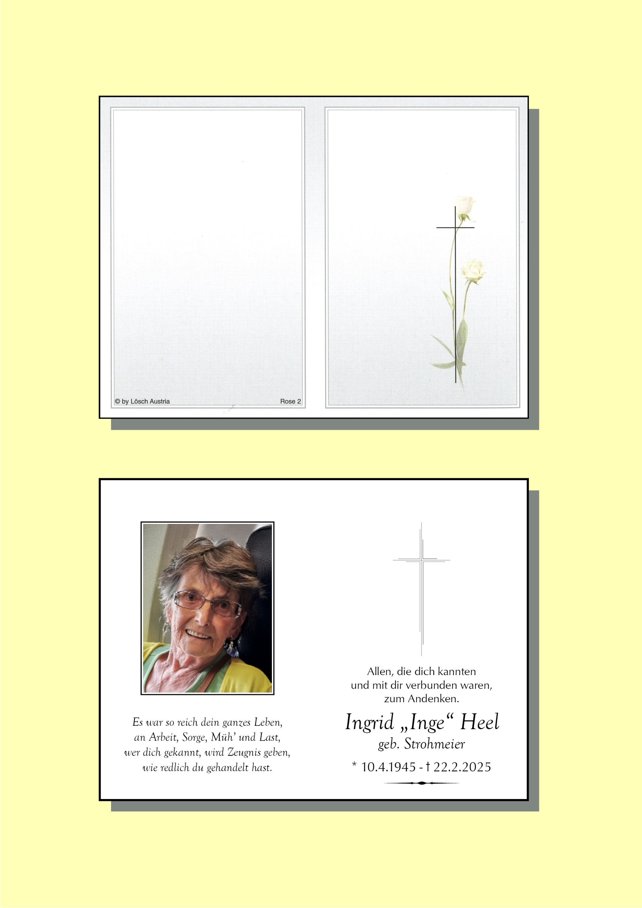 Mein aufrichtiges Beileid zum Tod Eurer lieben Inge.
