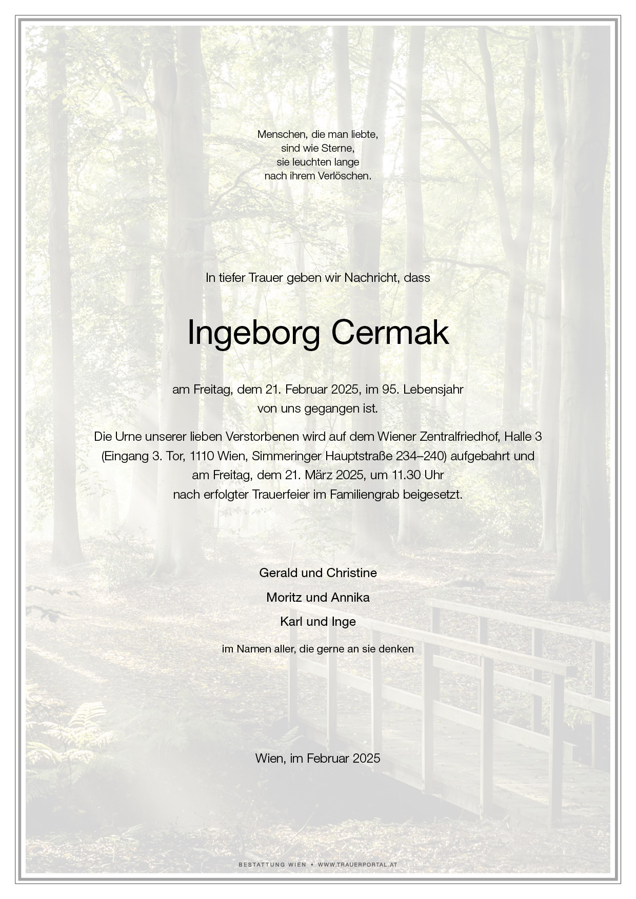 Bestattung wurde durchgeführt von: Bestattung Wien Bestattung Wien GmbH Simmeringer Hauptstraße 339 1110 - Wien (Simmering) Tel.: 01 501950 zum Bestatter