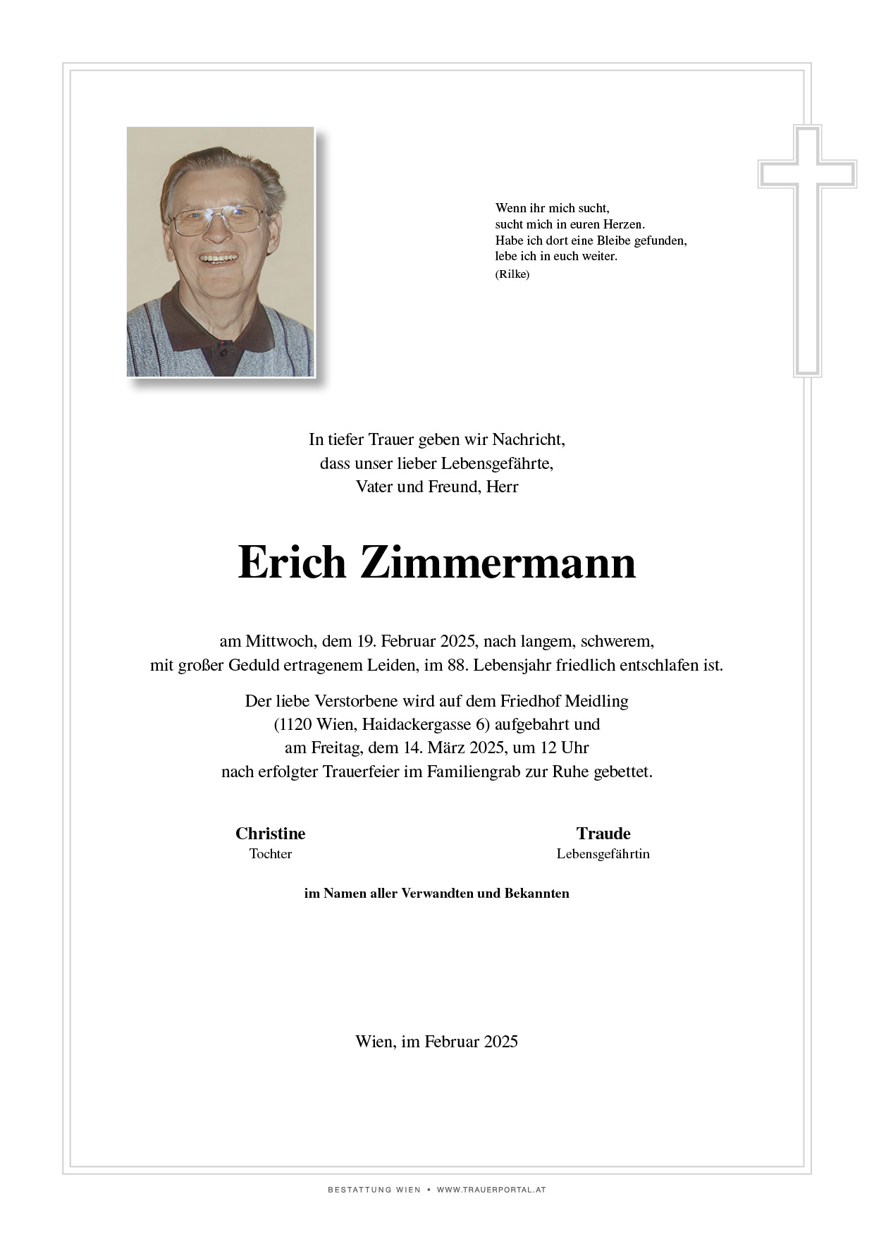 Bestattung wurde durchgeführt von: Bestattung Wien Bestattung Wien GmbH Simmeringer Hauptstraße 339 1110 - Wien (Simmering) Tel.: 01 501950 zum Bestatter