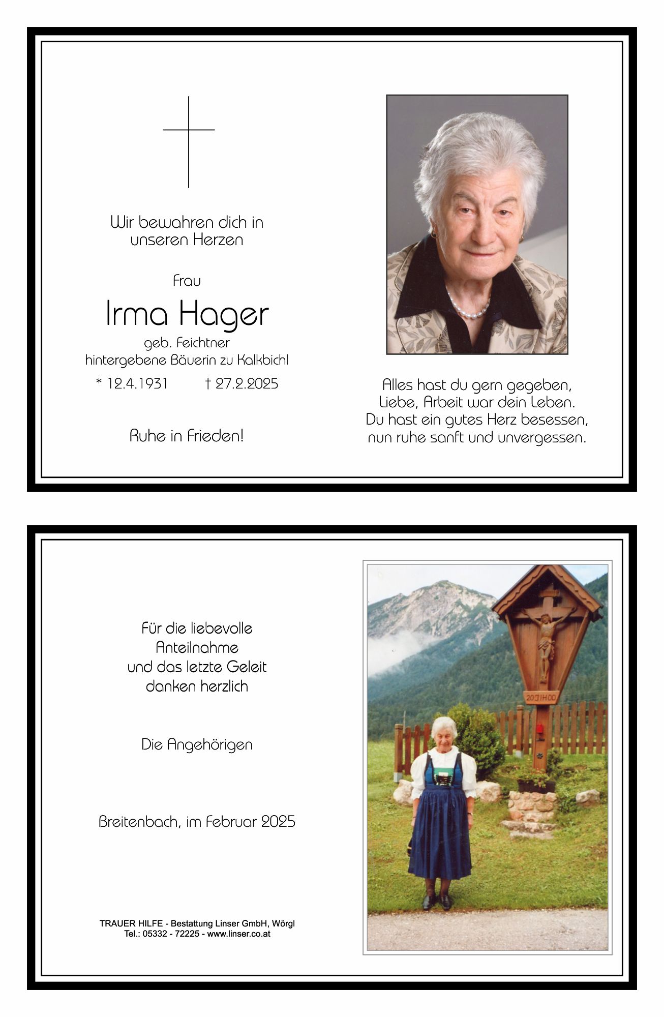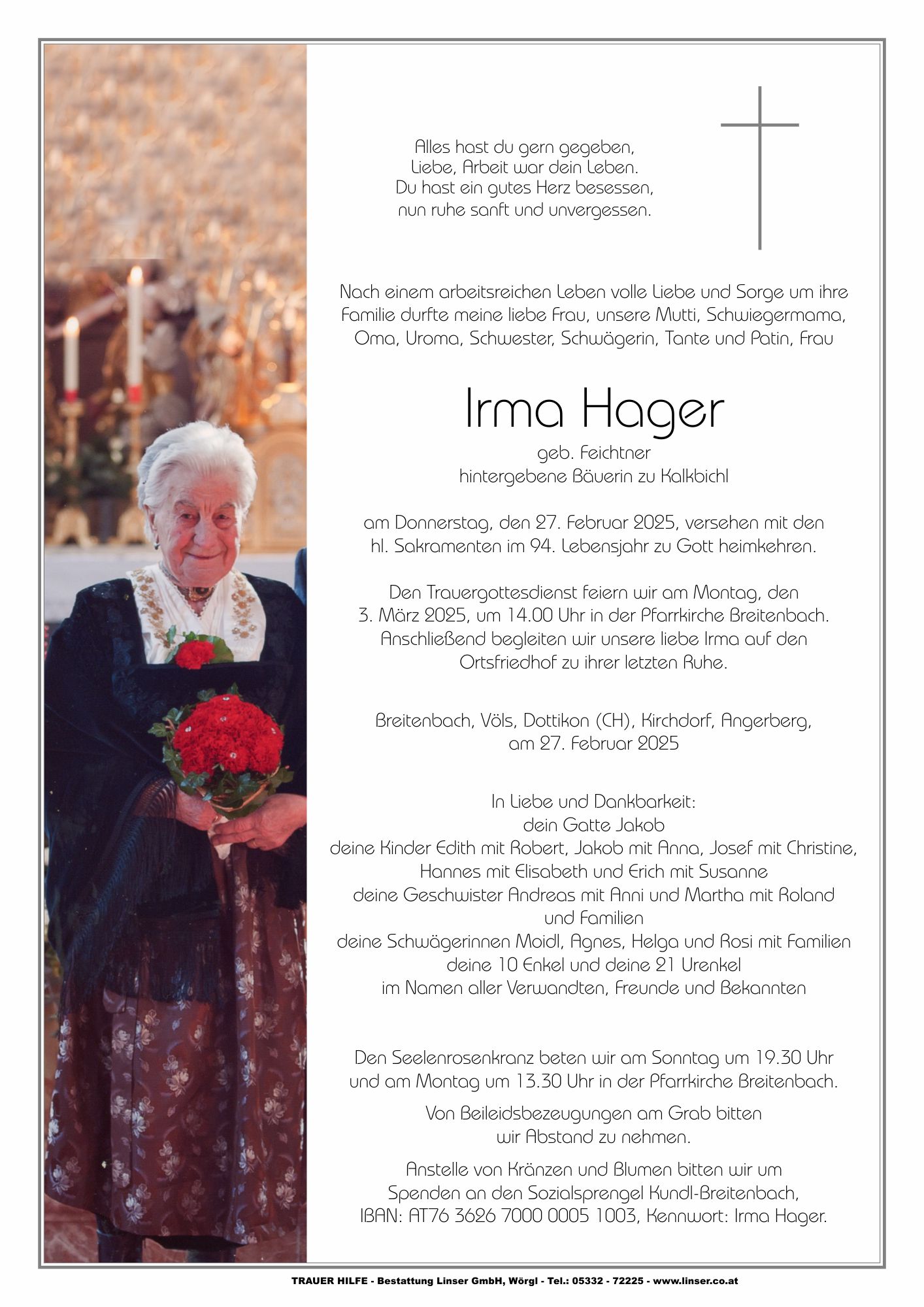 Friedhof Breitenbach am Inn, † 27.02.2025 (93 Jahre)